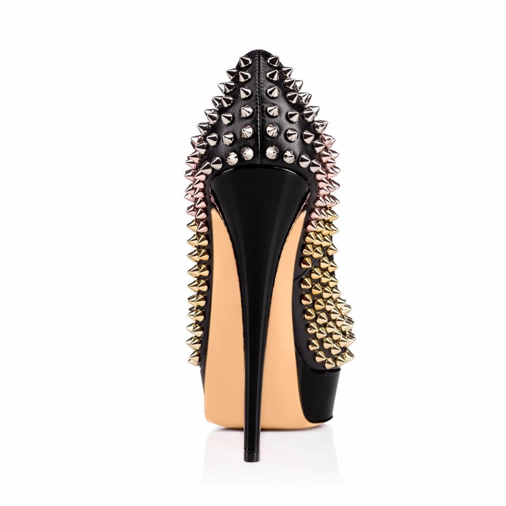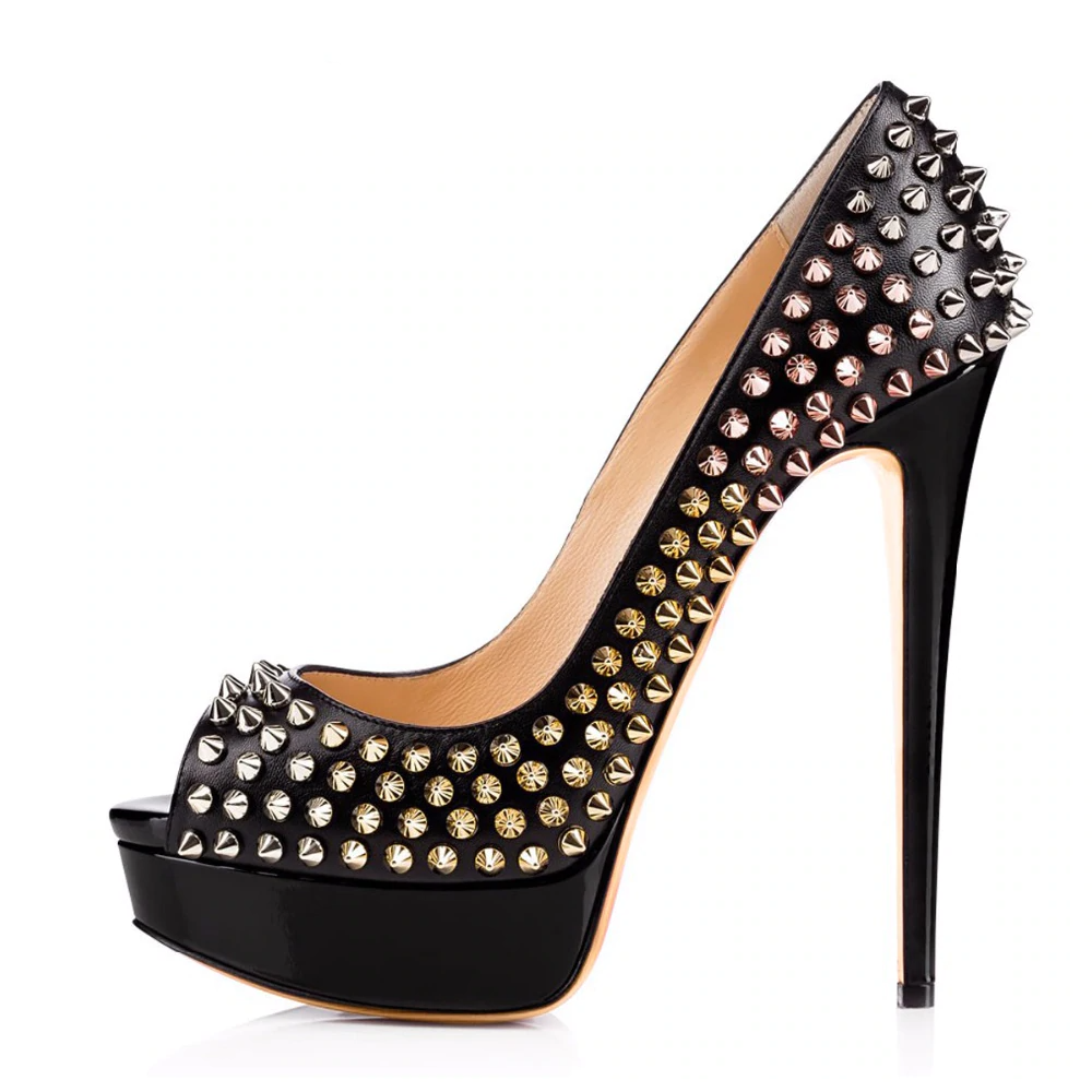PU Rubber on Rivet Super Hight Peep Toe Heel