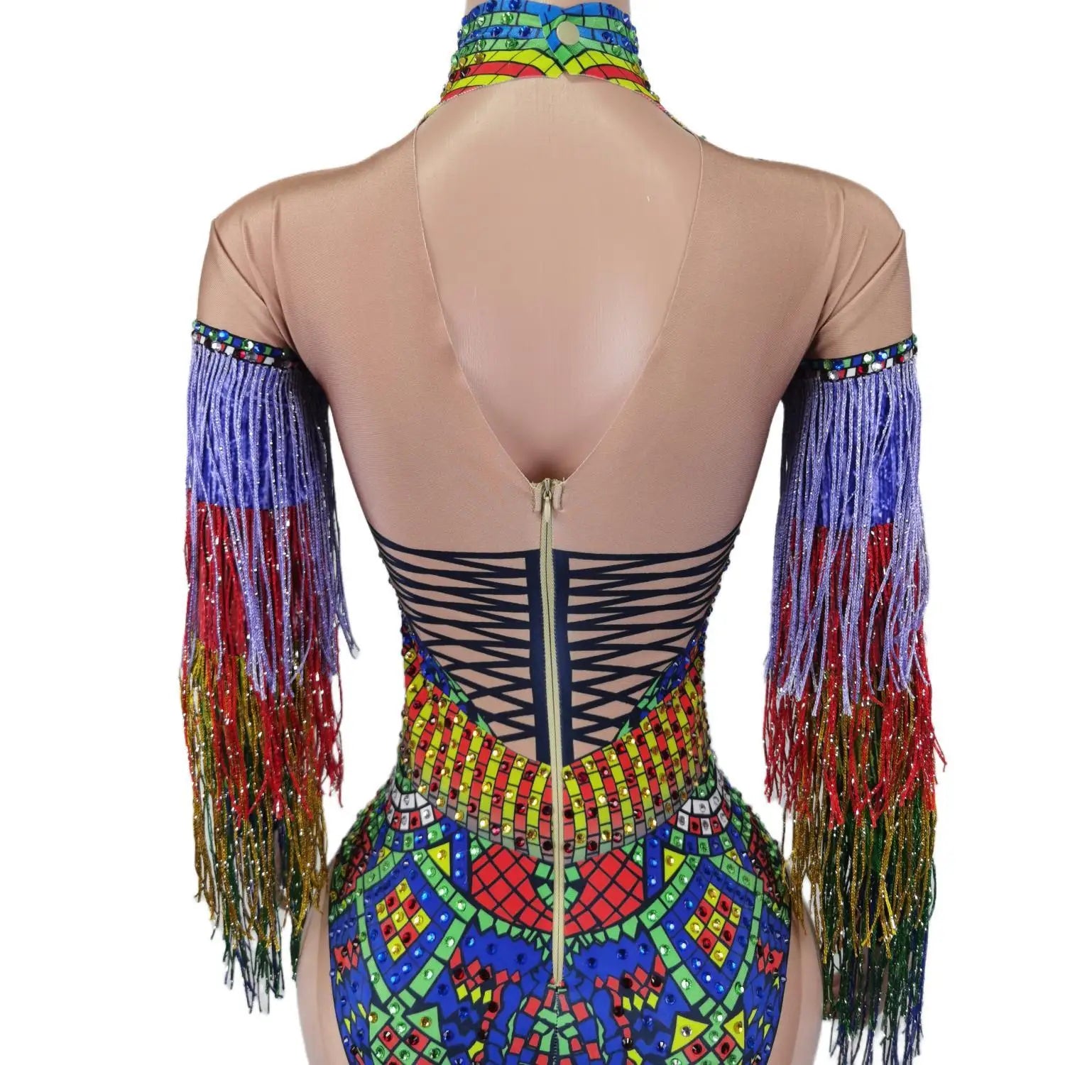 Elevate your style with our Fall In Your Love Bodysuit. Made with high-quality Spandex for comfort and flexibility. The playful design features sparkling rhinestones and flirty tassels. Show off your arms with the full sleeve length. Perfect for expressing your vivacious personality!