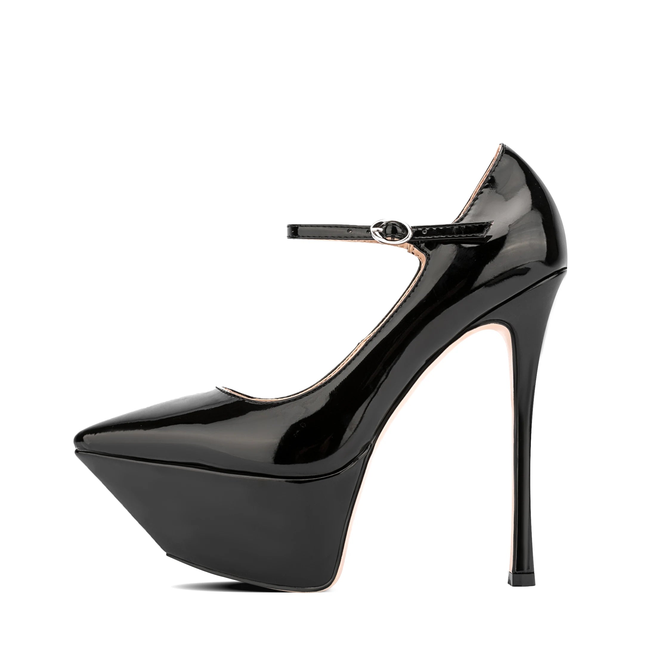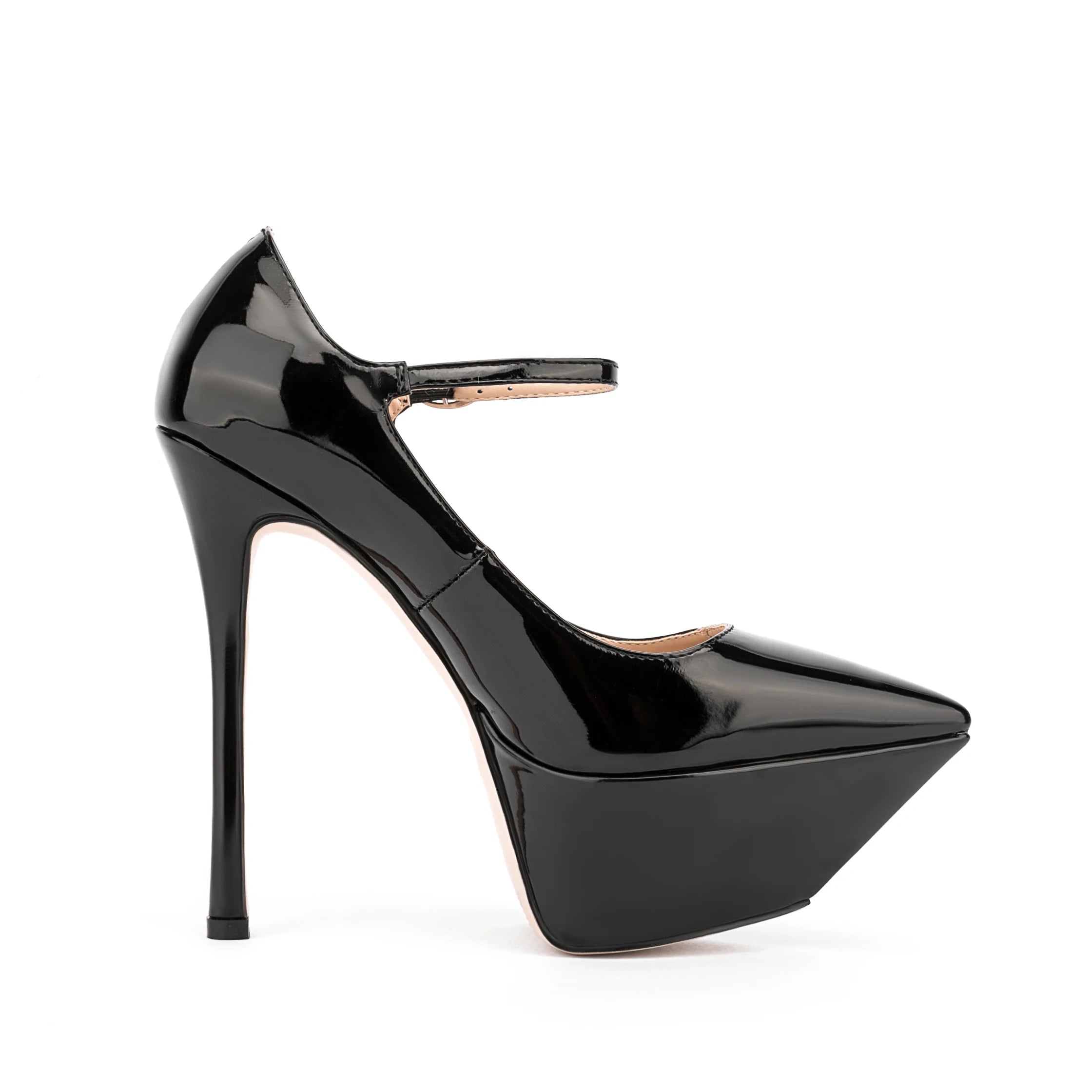 Elevate your style with Falling High Pump Shoes! Crafted with shiny patent leather and a pointed toe, these shoes add a touch of sophistication to any outfit. The rubber outsole provides durability and super high heel give you extra height. Make a statement with every step!