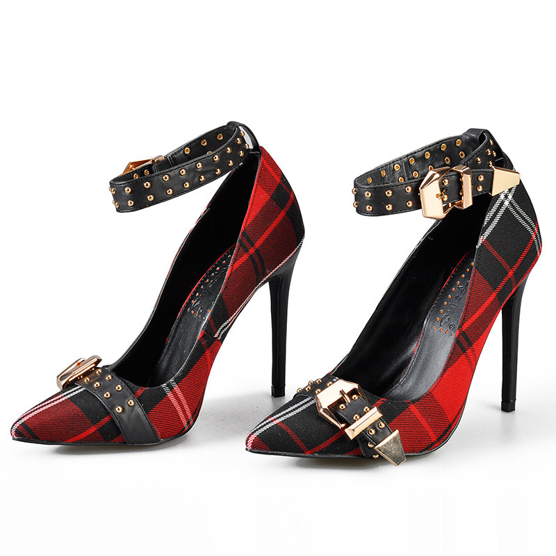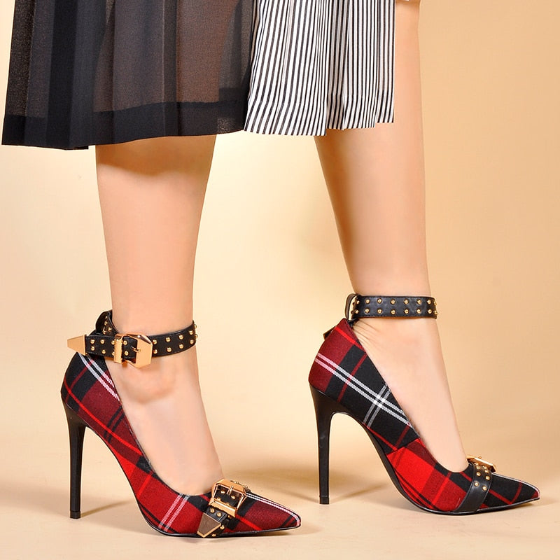 Cotton Fabric Mixed Ankle Buckle Strap Heeld Shoes