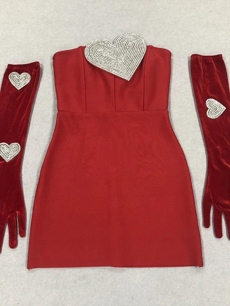 Add a touch of sparkle to your wardrobe with our Love Left Behind Mini Dress. With a slim fit and strapless neckline, this dress will accentuate your figure and turn heads at any event. The rhinestone decoration adds an extra touch of glam, and the above knee length keeps it fun and flirty. Made with high-quality polyester, this dress is perfect for any occasion.