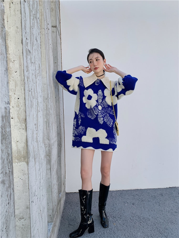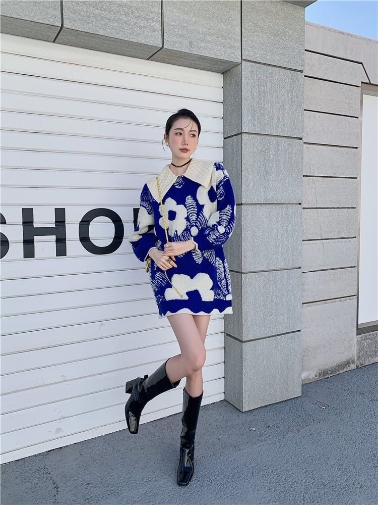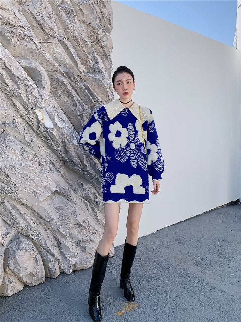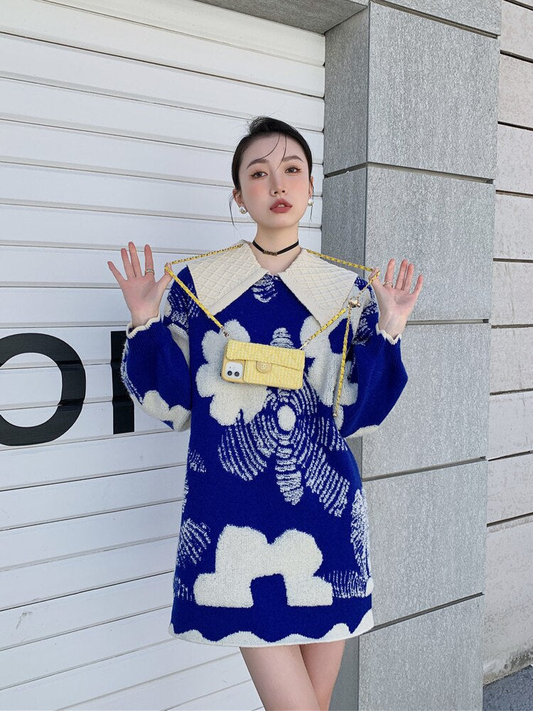 This delightful dress is perfect for those days when you want to feel beautiful and put together. The mini dress is made of acrylic material and features a woven floral pattern with a lantern sleeve and a turn-down collar. It's perfect for those days when you want to feel feminine and girly, but also like you're not taking it too seriously.