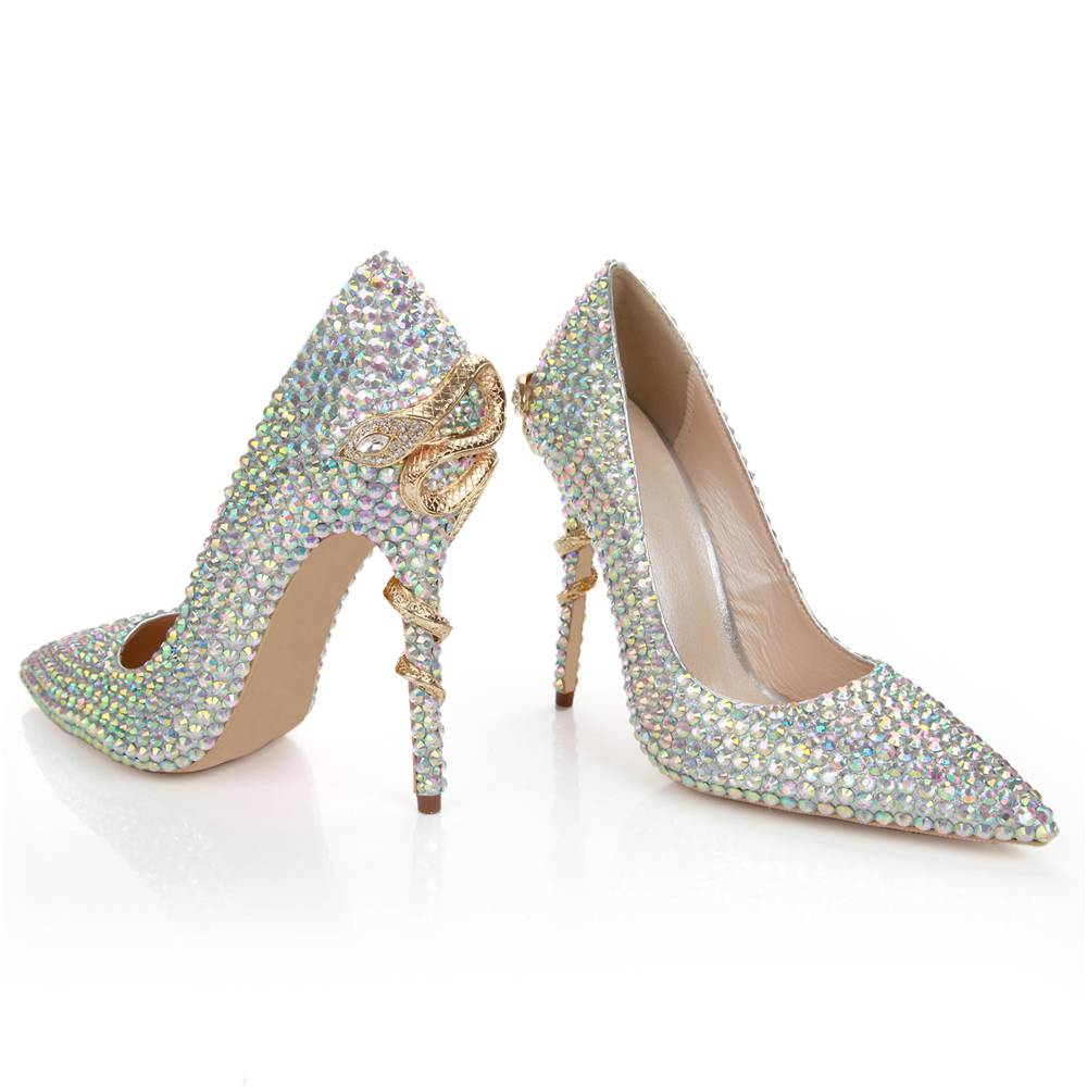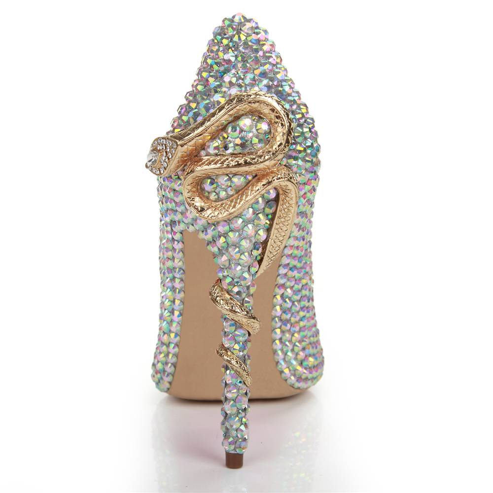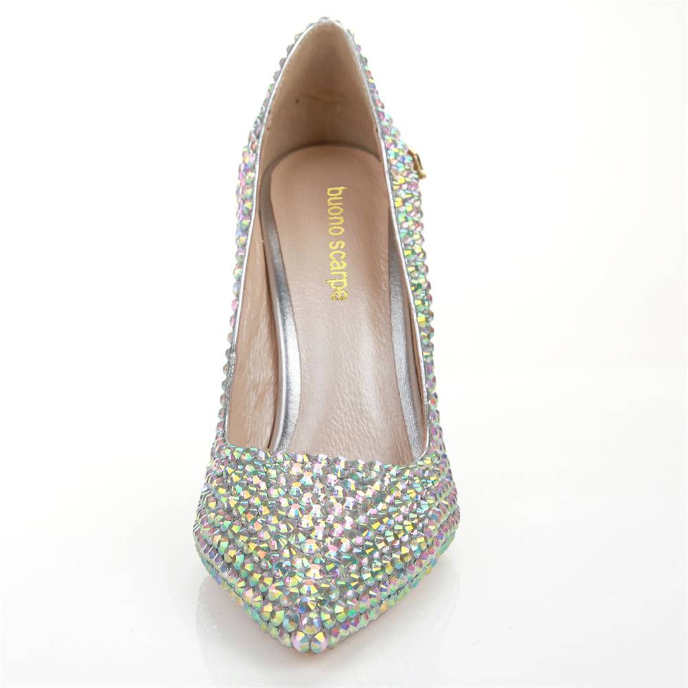 Genuine Sheepskin Leather Rhinestone Pointed Toe Stiletto Heels
