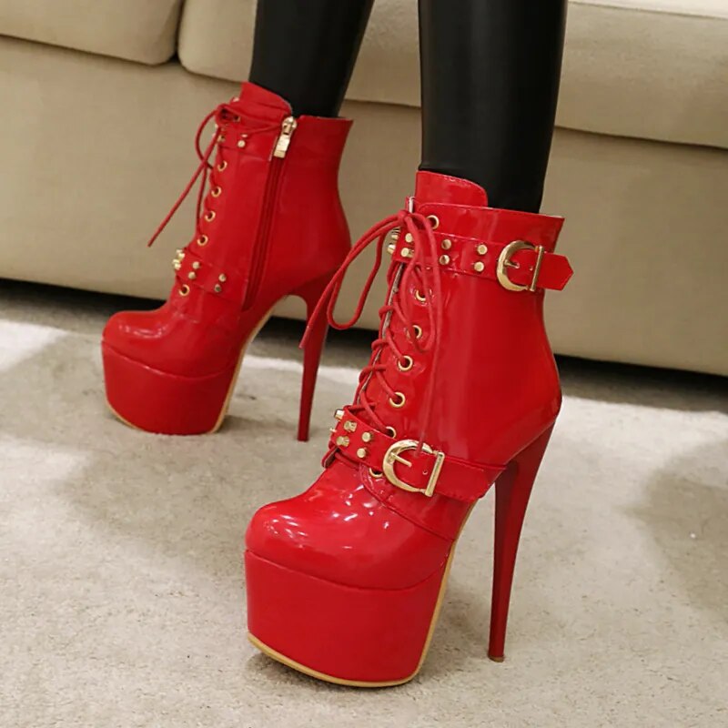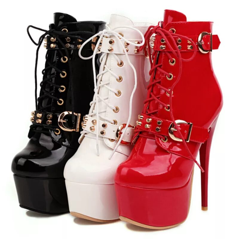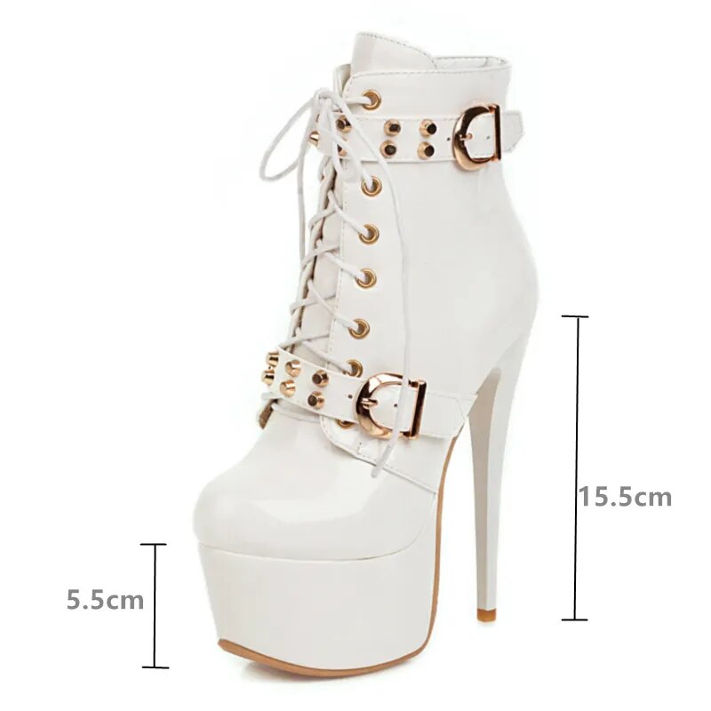 These Stolen Lullaby Boots are crafted with quality materials - patent leather for the shaft, upper, and lining, and rubber for the outsole. A thin heel and round toe provide a comfortable fit, with a heel height of 8cm and a platform height of 5-7cm. These fashionable boots have a solid pattern, a zip closure for easy on/off, and a plush insole for extra comfort.