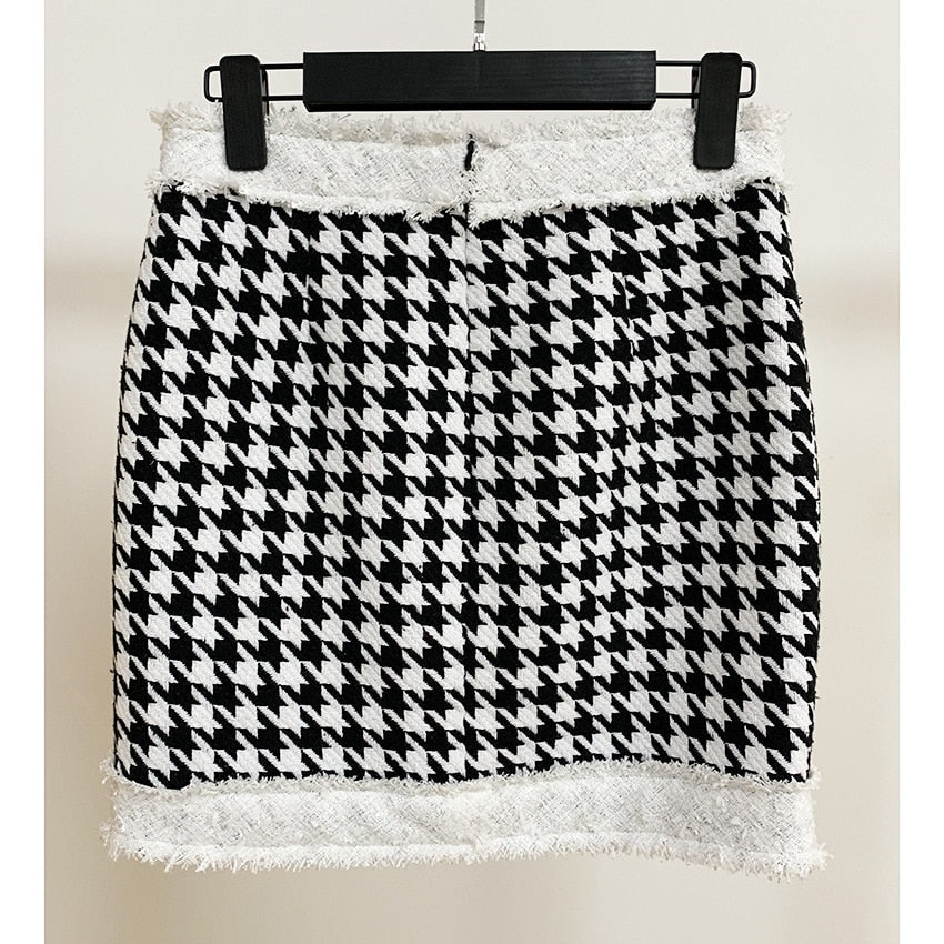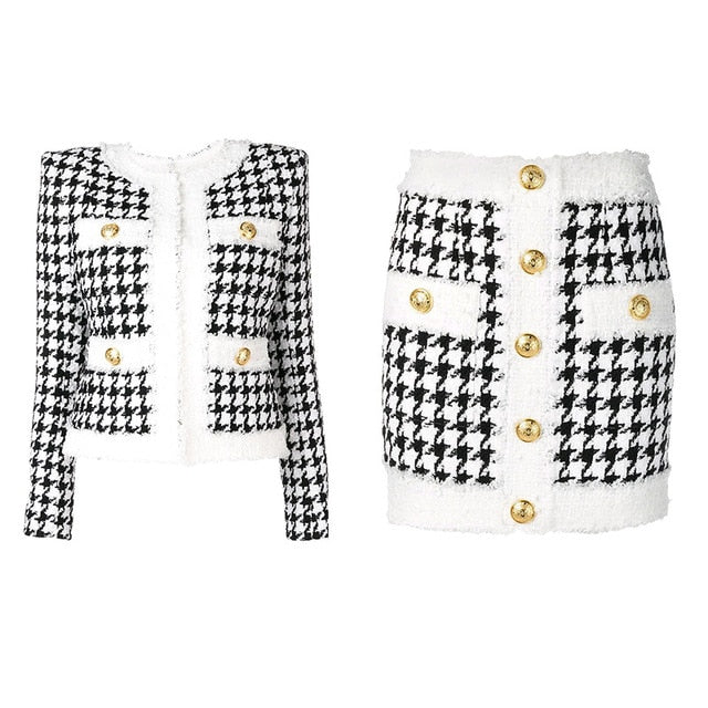 Cotton Polyester Plaid O-Neck Collar Button Decoration Mini Skirt Sets