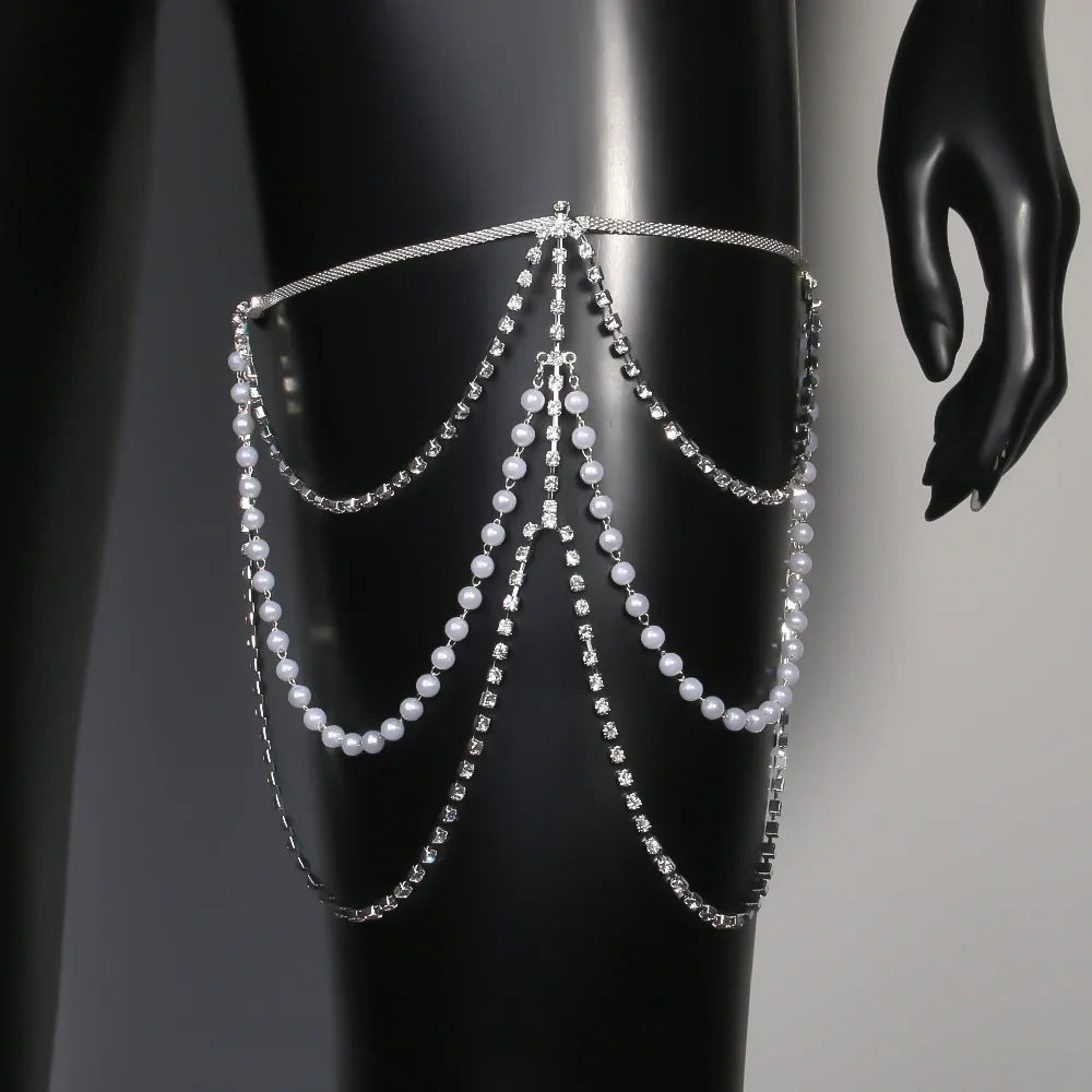 Add some sparkle to your style with "In a Driveway" body jewelry. Crafted with high-quality copper and adorned with rhinestones, this stunning multi-layer thigh chain adds a geometric touch to your look. Elevate your fashion game and turn heads with this unique and eye-catching accessory!