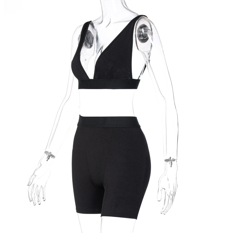 V-Neck Crop Tank Top and Elastic Waist Shorts with Polyester Spandex Material