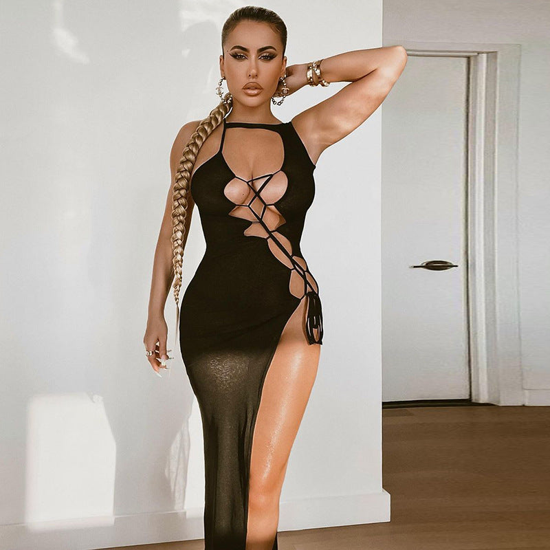 Set your style apart from the crowd in this see-through maxi dress. The maxi length gives it an easy-going look that's perfect for any occasion. This sleeveless design keeps your arms uncovered so you stay cool and comfortable. The high-slit design is a captivating way to show off a dressy look.