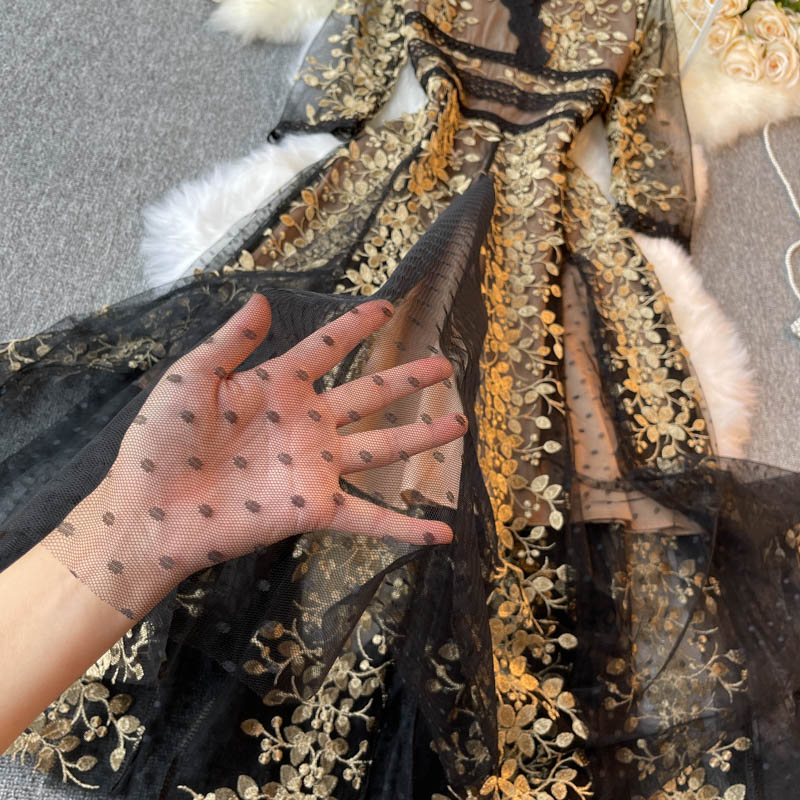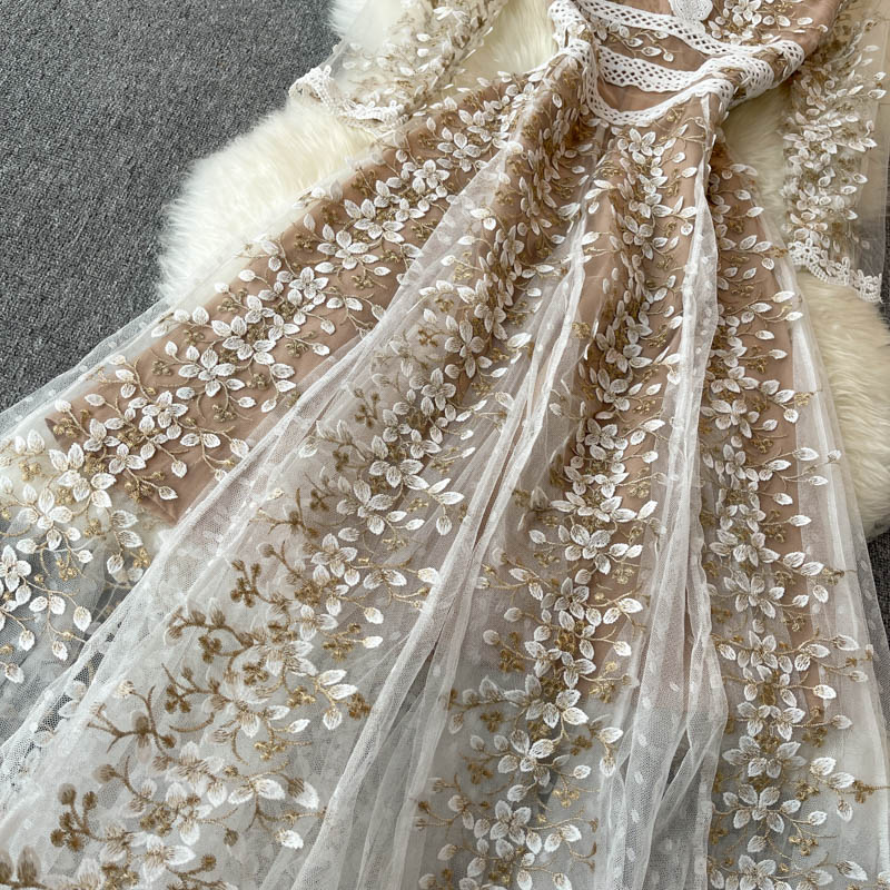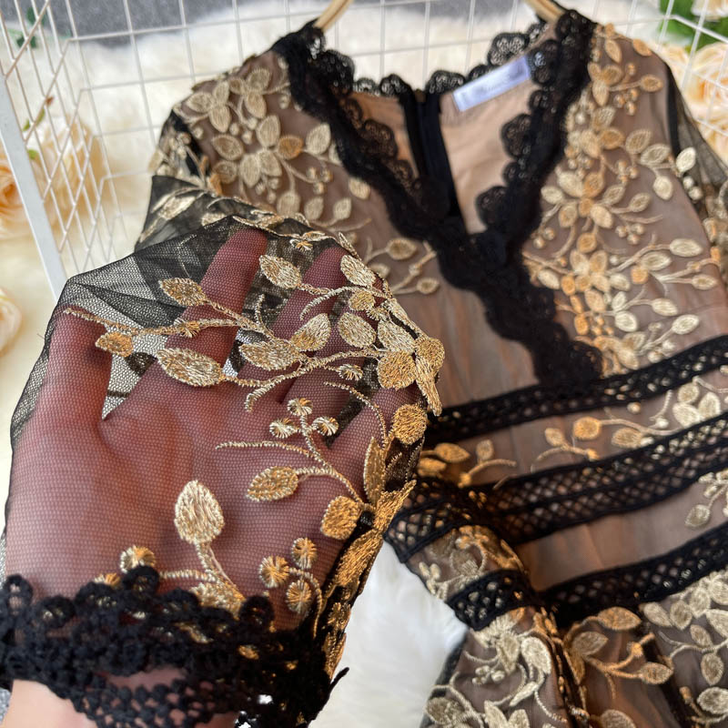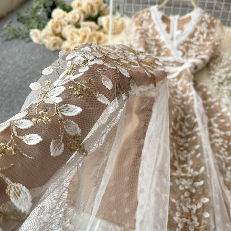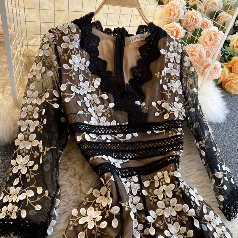A pretty and feminine floral lace dress that will make any woman feel more confident. The multi-colored floral pattern and pleated styling give it a feminine and youthful feel while the v-neckline is the perfect style to feel feminine and sexy. It's the perfect way to add a feminine and feminine touch to any outfit. This lace dress makes a great choice for special occasions, dates, and parties. It's easy to style and can be worn with a variety of accessories.