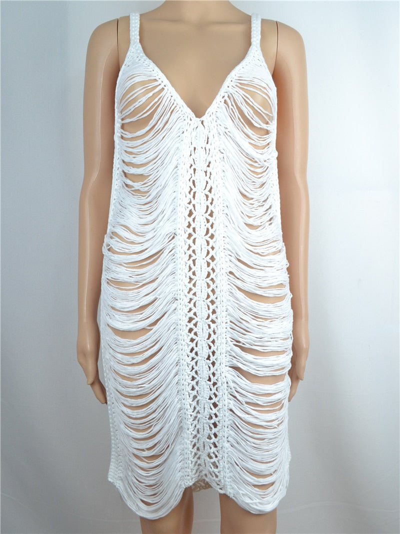 Hollow Out Mini Dress with Geometric Pattern and Spaghetti Straps