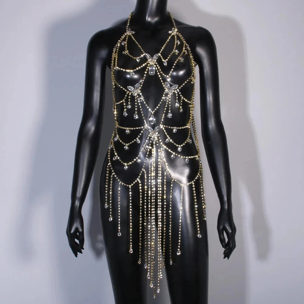Radiate elegance and allure with Kissed By Shadows Body Jewelry. Crafted with rhinestones on copper, this stunning piece is sure to enhance any outfit. Stand out from the crowd and embrace your inner sparkle with this must-have accessory.