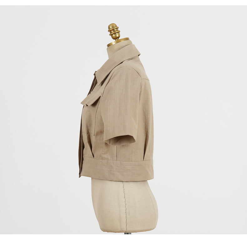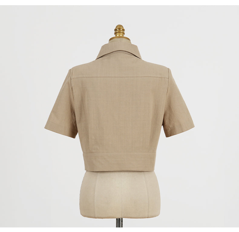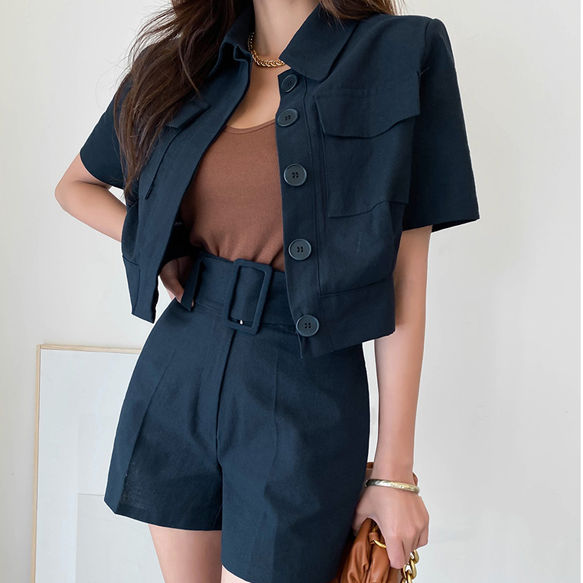 Cotton Polyester Crop Shirts and Shorts Set with Turn-Down Collar and Sashes