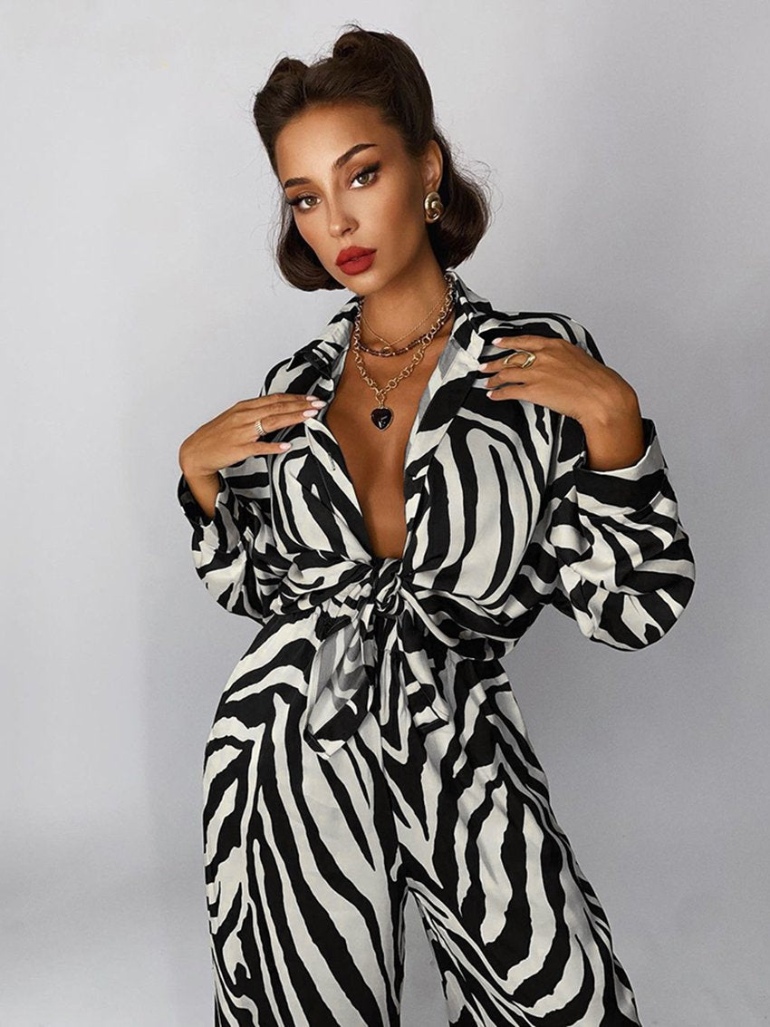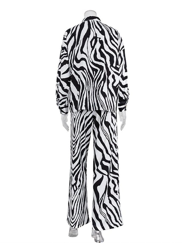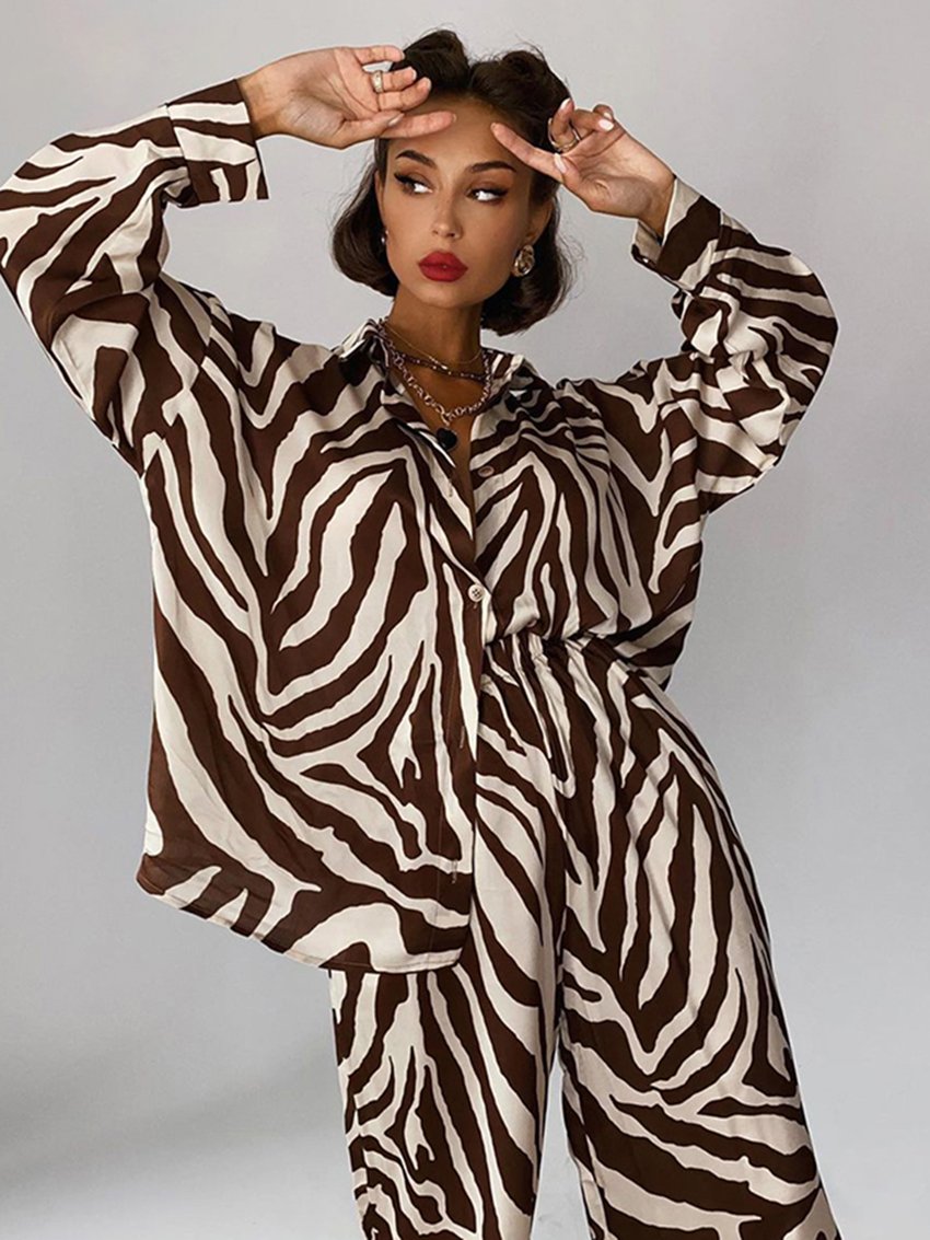 In need of some loungewear? Look no further than this zebra-print set. Made from a soft polyester-blend, these long-sleeved shirts and elastic waisted lounge pants are perfect for any occasion. Wear them with a pair of sandals for a casual day out on the town.