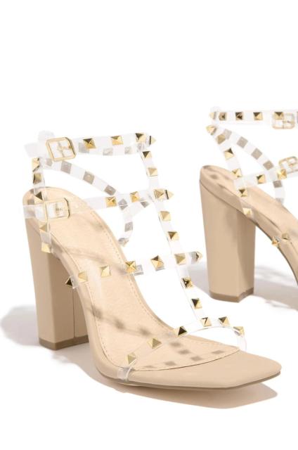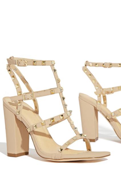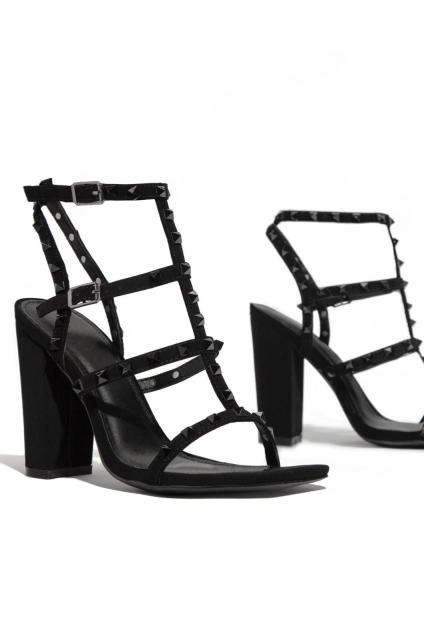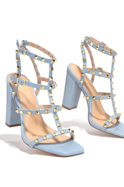Square Toe Gladiator Sandals with Rivet Decoration and Buckle Strap Closure