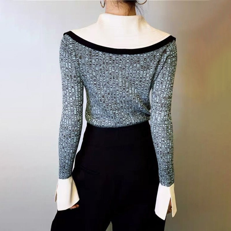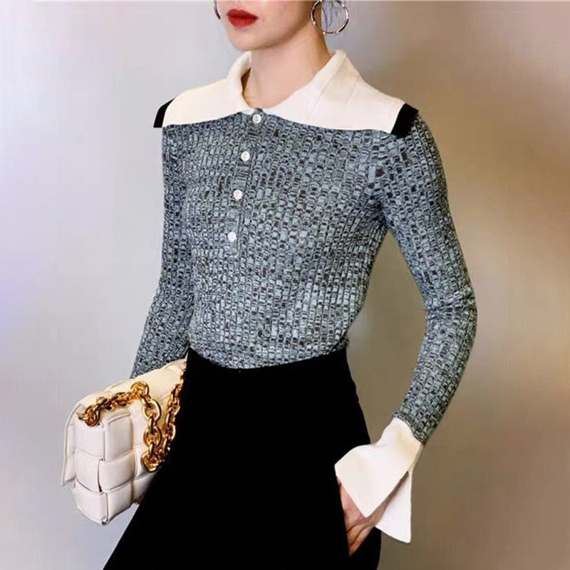 Geometric Pattern Blouse with Flare Sleeve and Cotton Polyester Material