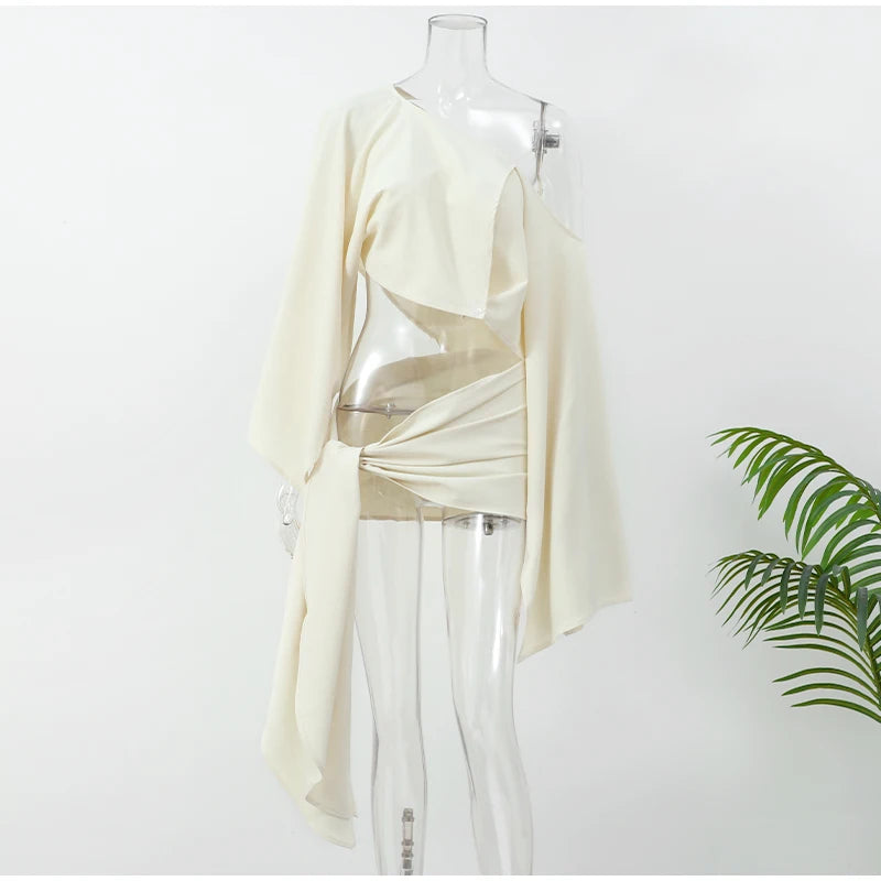 This stunning skirt set is made of high-quality polyester, with an asymmetrical design that adds a touch of unique style. The O-neck collar and pullover closure make it easy to wear, while the flare sleeves add a graceful touch. So beautiful, it's almost cruel!