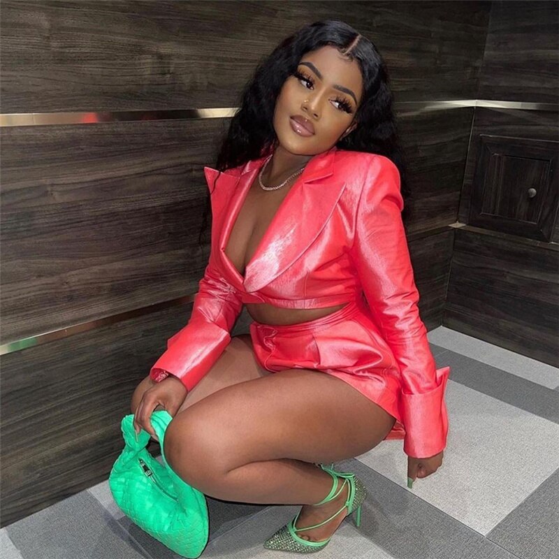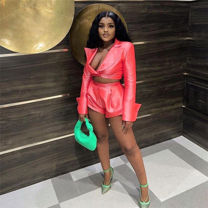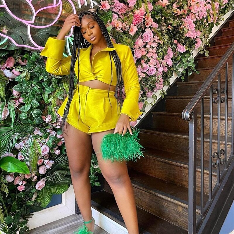 This set is great for any occasion and any season. The crop top features a classic v-neckline. These short sets are super cute and come in red or yellow colors.