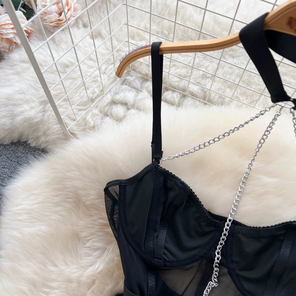 This lingerie set is a unique combination of style, comfort, and affordability. Crafted with polyester to provide a lightweight feel and durability, this lingerie set features a skinny cut to flatter your body type and a chain for added style. Perfect for any occasion.