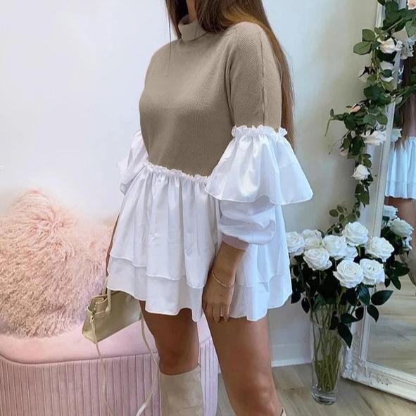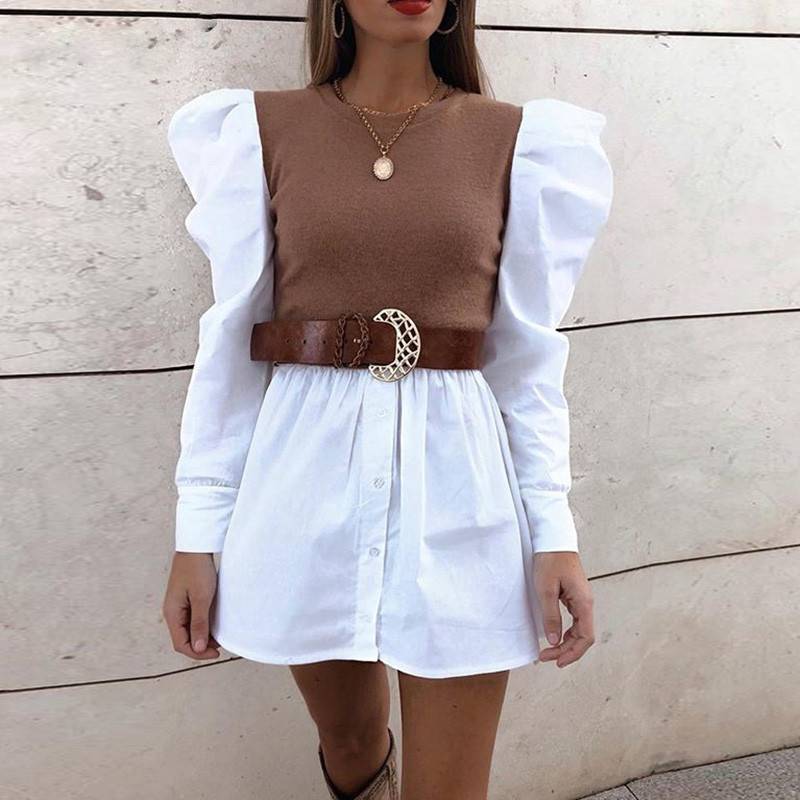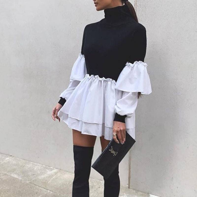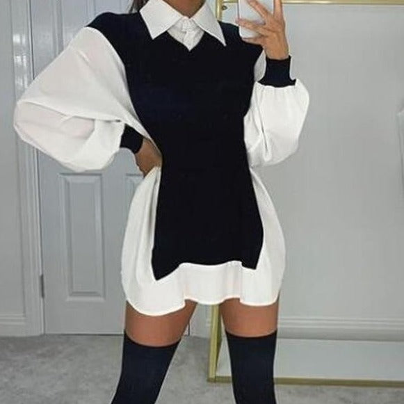 Long Sleeve Two-Toned Color Mini Dress with Polyester Material
