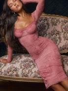 This midi dress is an ideal choice for any occasion. Crafted from a blend of polyester and spandex, it offers a comfortably slim fit along with a printed pattern. Its midi length makes it the perfect choice for formal and casual occasions.