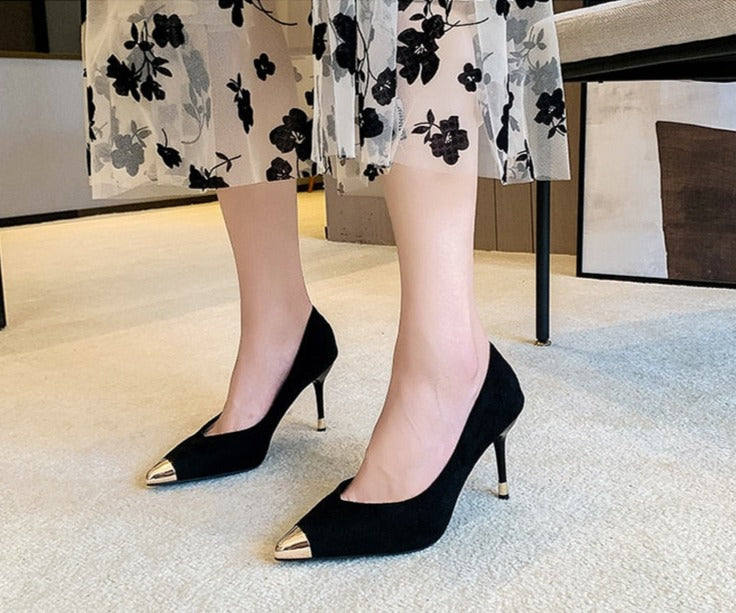 Look great and feel great in these simple and comfortable slip-on shoes. The simple and versatile look of a pump shoe is a wardrobe staple that you can rely on for years. This women's shoe features a pointed toe and thin heel that is sure to become a favorite for any wardrobe.