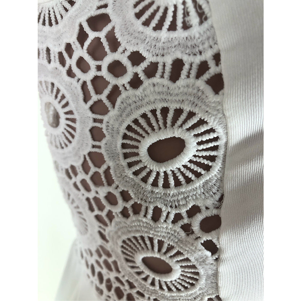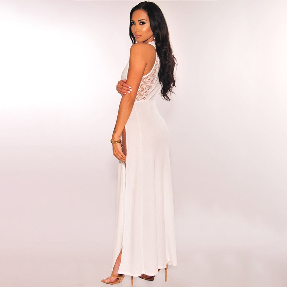The maxi dress is perfect for any event where you want to look elegant and feminine. It features a polyester fabric, sleeveless, lace decoration, and solid white color.