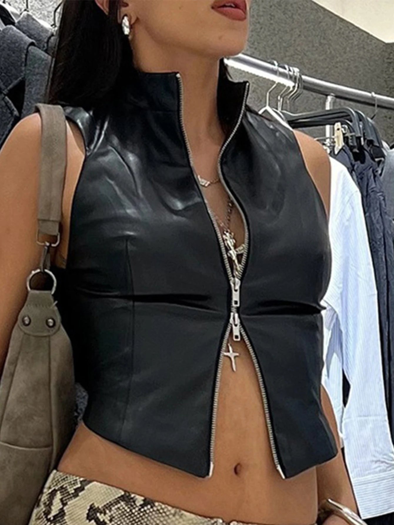 Unleash your rebellious side in our Rollin' Side By Side Crop Top. This edgy PU piece features a sleek zipper detail and solid construction that hugs your curves in all the right places. Designed for those who dare to stand out, this crop top makes no apologies for turning heads and breaking hearts.