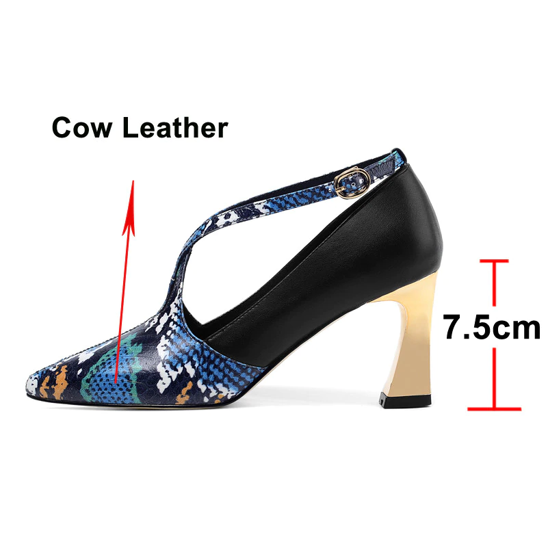 Cow Leather on Pointed Toe Buckle Straps Strange Heel