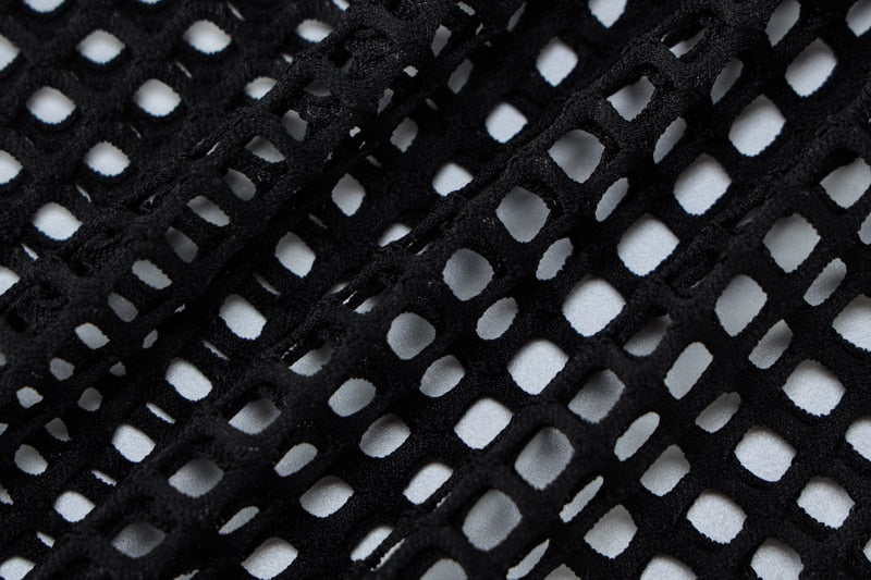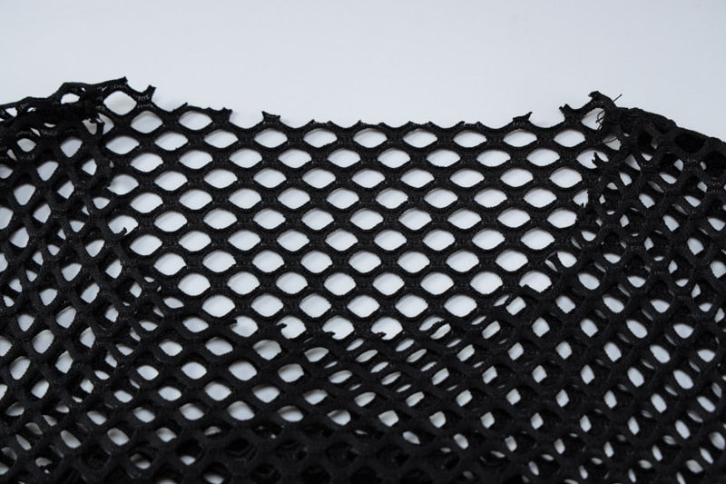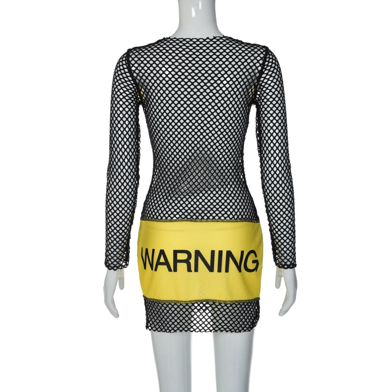 An expertly crafted mini dress, this piece features a lightweight polyester fabric in a fishnet detail with a bold black and letter printed decoration. Perfect for any occasion from day to night, this piece is sure to turn heads with its combination of fashion and craftsmanship.