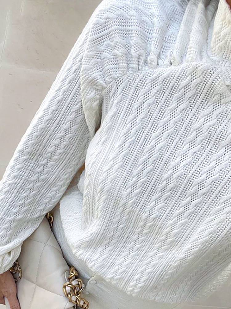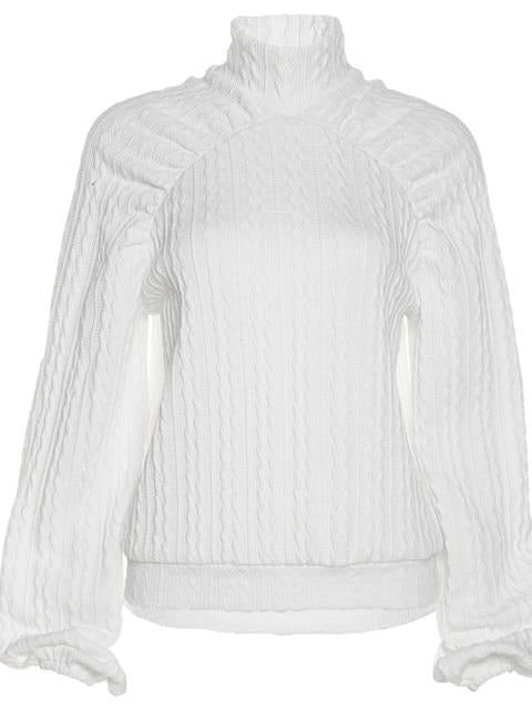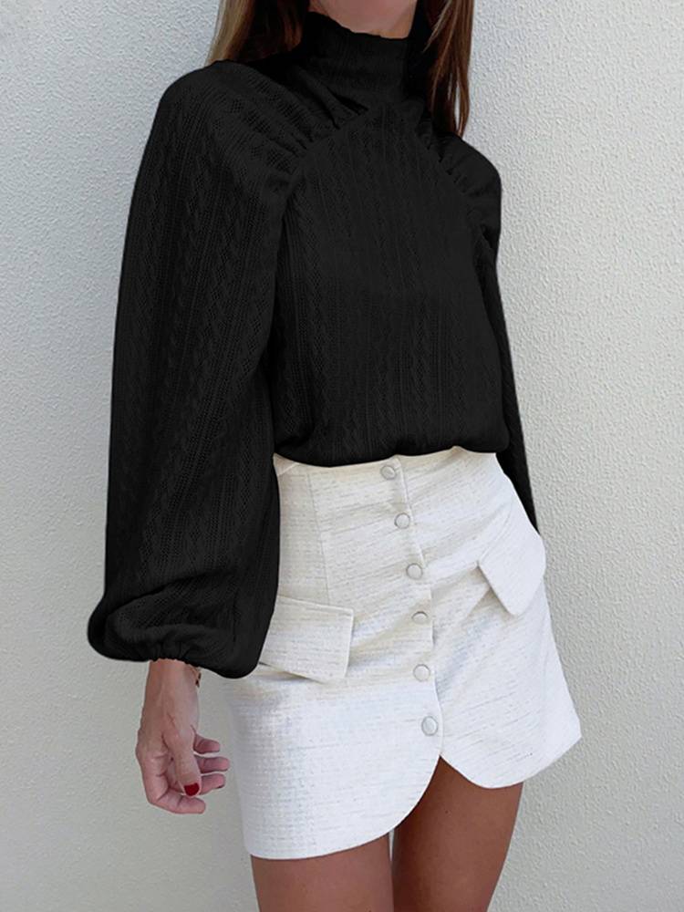 A great way to stay warm and stylish this season is with this simple but stylish turtleneck sweatshirt with a geometric pattern and lantern sleeve. The soft fabric makes it comfortable to wear. Available in two colors.