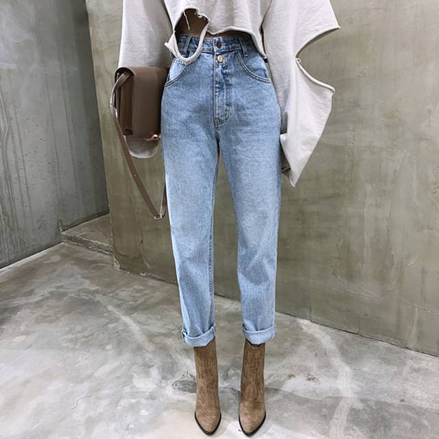 Cotton Polyester Button and Pockets Decoration Ankle-Length Jeans
