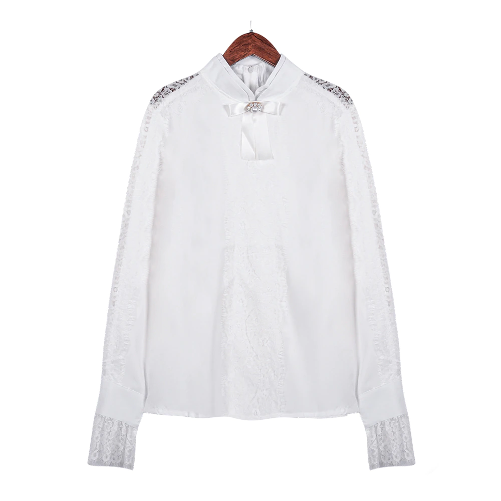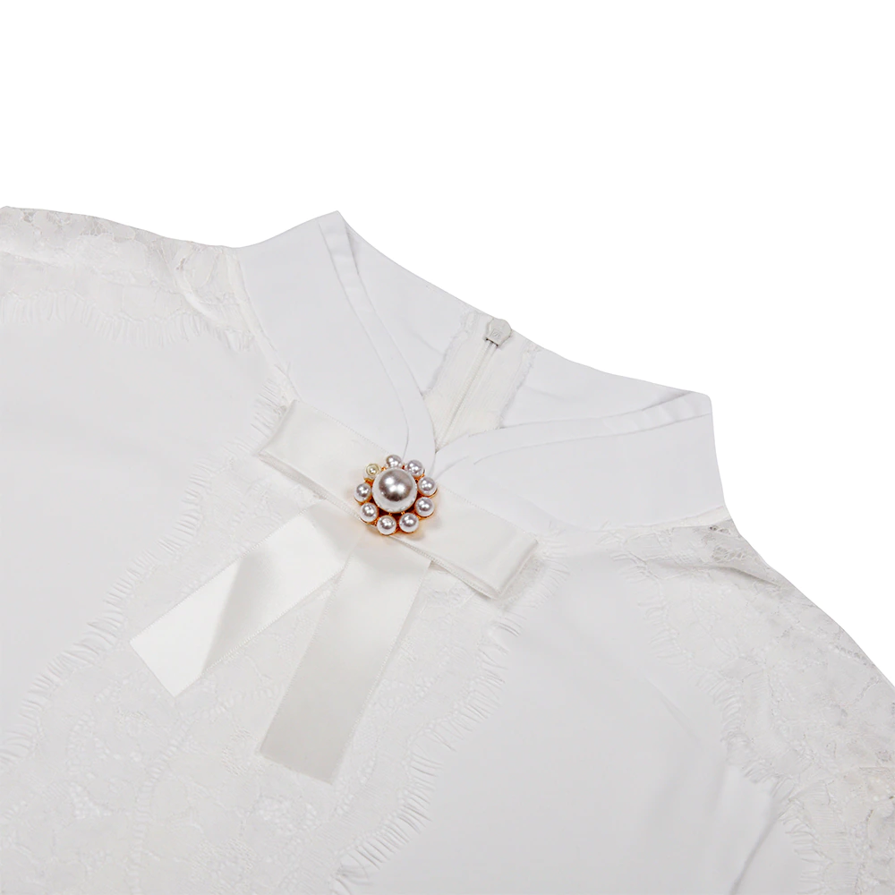 Looking for a dressy blouse for women? This one will be a favorite. Featuring a beautiful and feminine neckline, this women's blouse is a great option for any special occasion. The flattering cut and classic design are sure to turn heads. Pair with high-waisted pants and a skirt for a classic look.