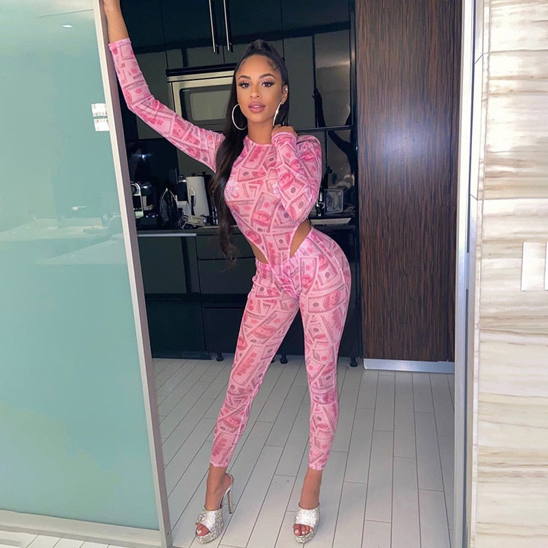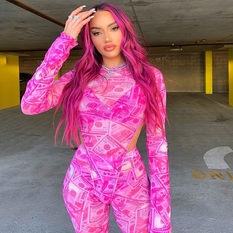 O-Neck Zipper Closure Bodysuit and Elastic Waist Legging with Print Pattern and Polyester Material