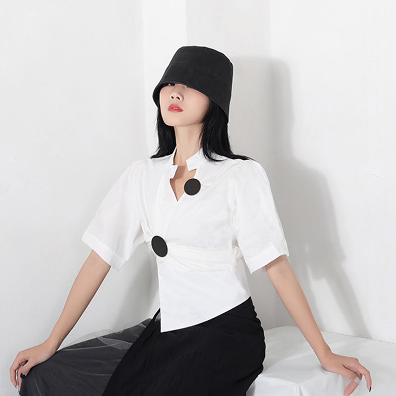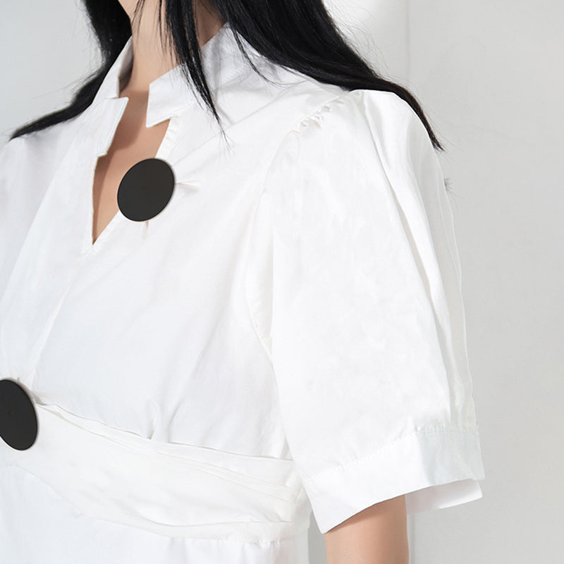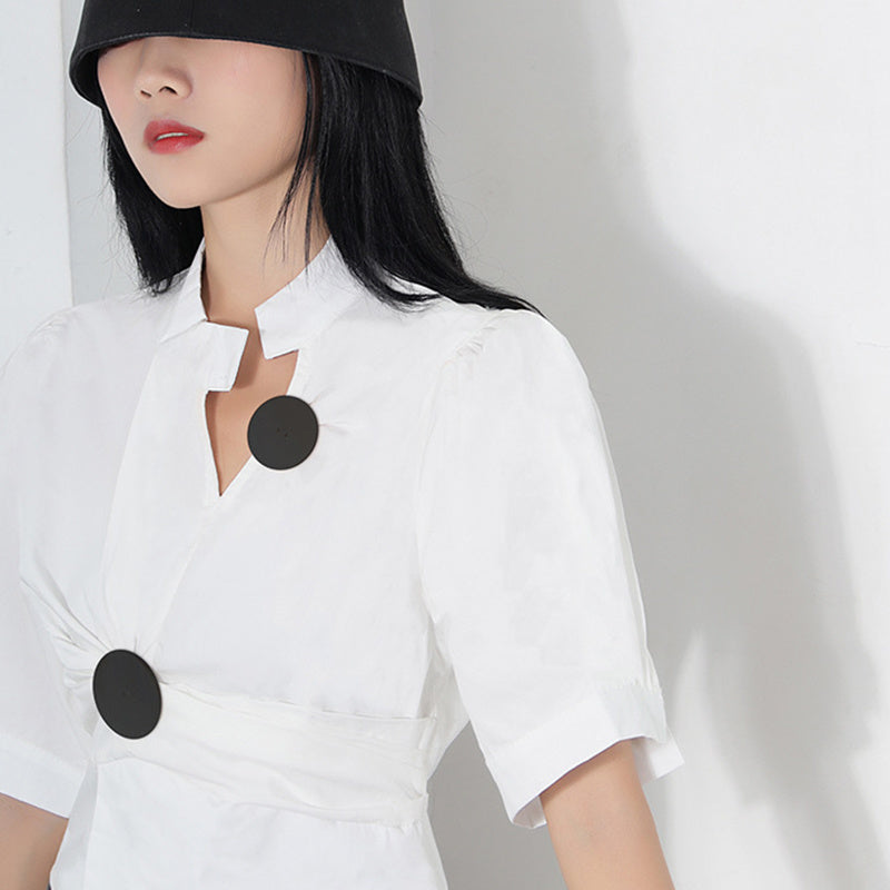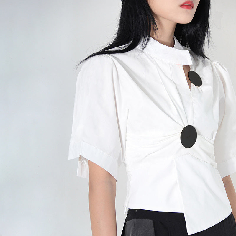This lovely, solid, cotton blouse is perfect for a variety of occasions. It has a short sleeve and a single-breasted design. It is available in white color.