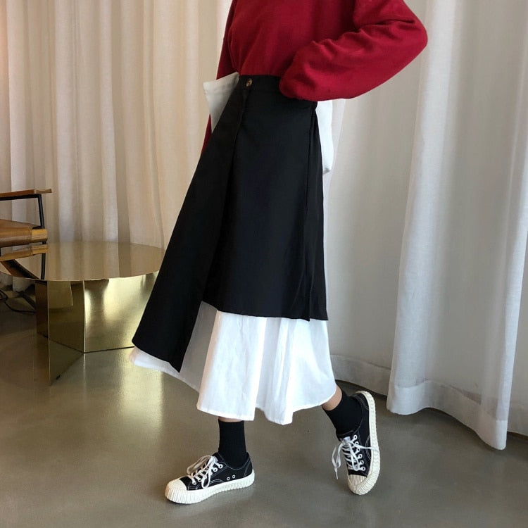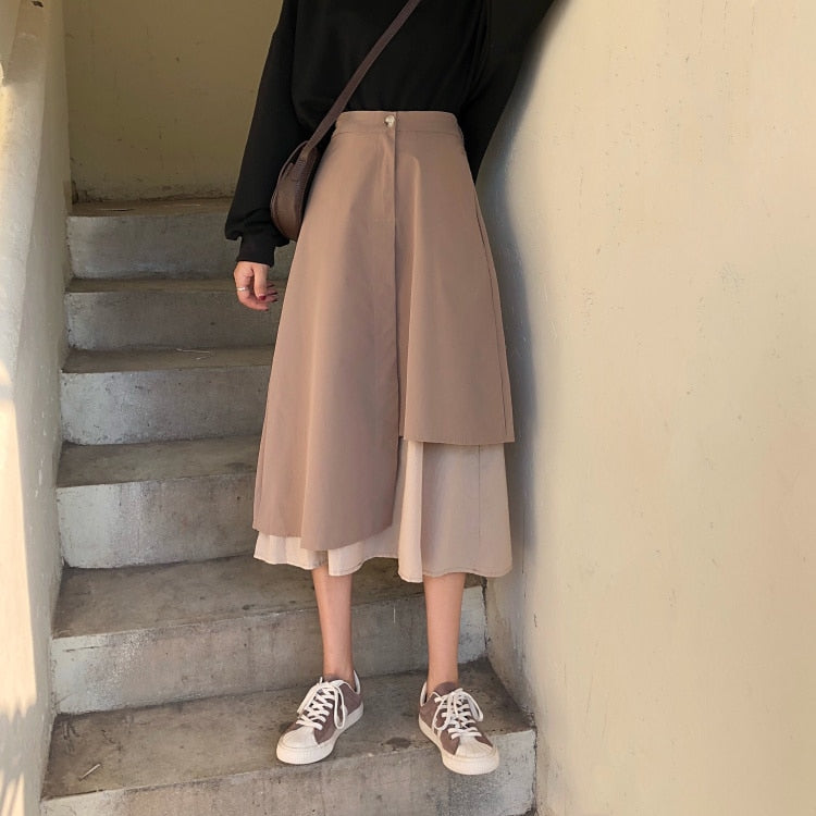 Polyester on Patchwork Pleated Ankle Lenght Skirt