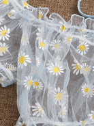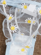 See-Through Daisy Flower Patterned Lingerie Sets with String Closure