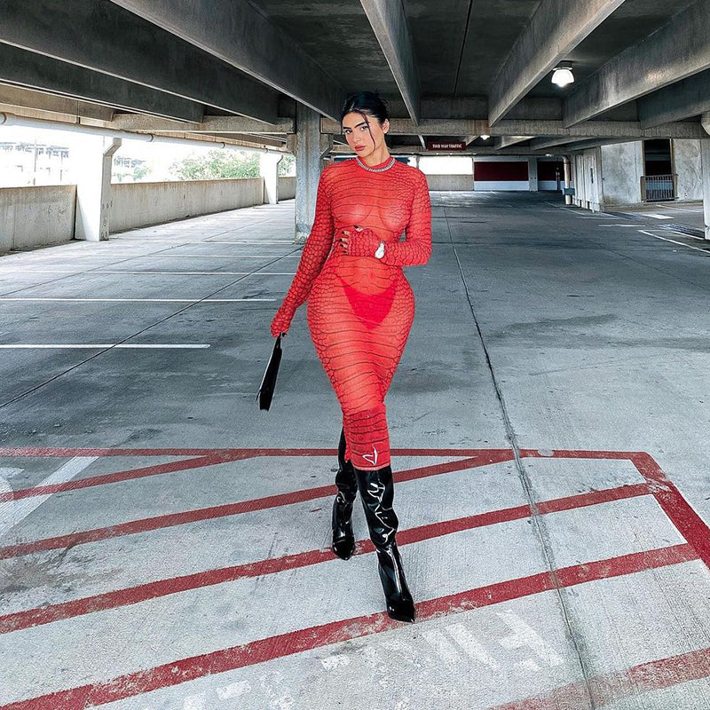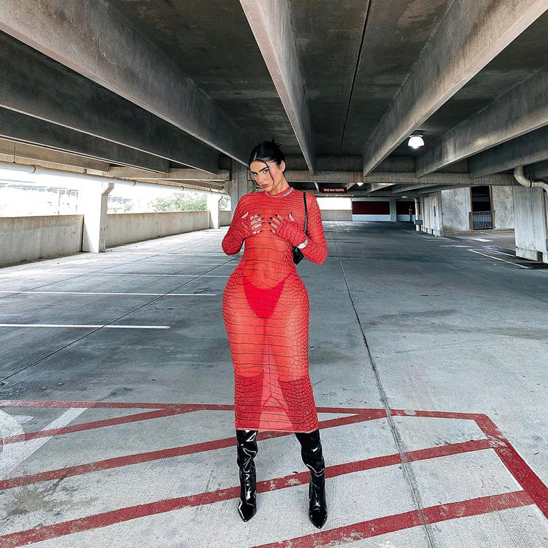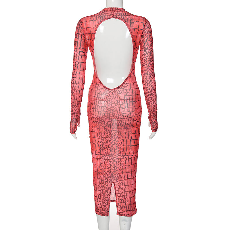 This see-through midi dress is irresistible! It's the perfect summer dress. The feminine silhouette and short length make this a great choice for a night out. The backless style and flattering fit make this a must-have for summer.