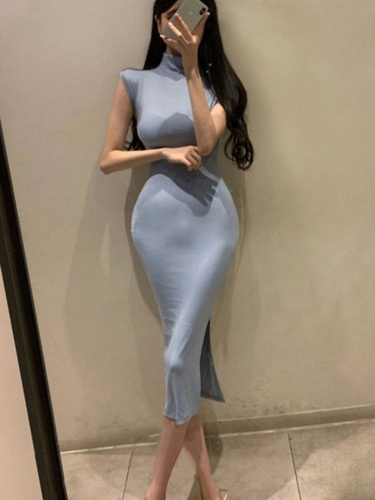 This short, sleeveless, bandage dress is the perfect piece for a night out. It's made from a soft, silky, and stretchy fabric that feels comfortable and looks great. The dress is perfect for wearing to a fancy occasion or any casual occasion.