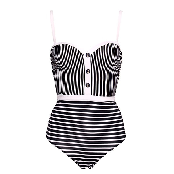 Horizontal and Vertical Stripe Patterned One Piece with Polyester Spandex Material