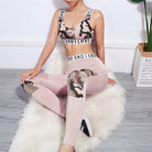 Polyester Patchwork Pattern Breathable Sleeveless Long Pants Set
