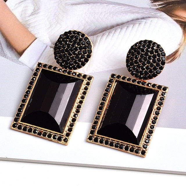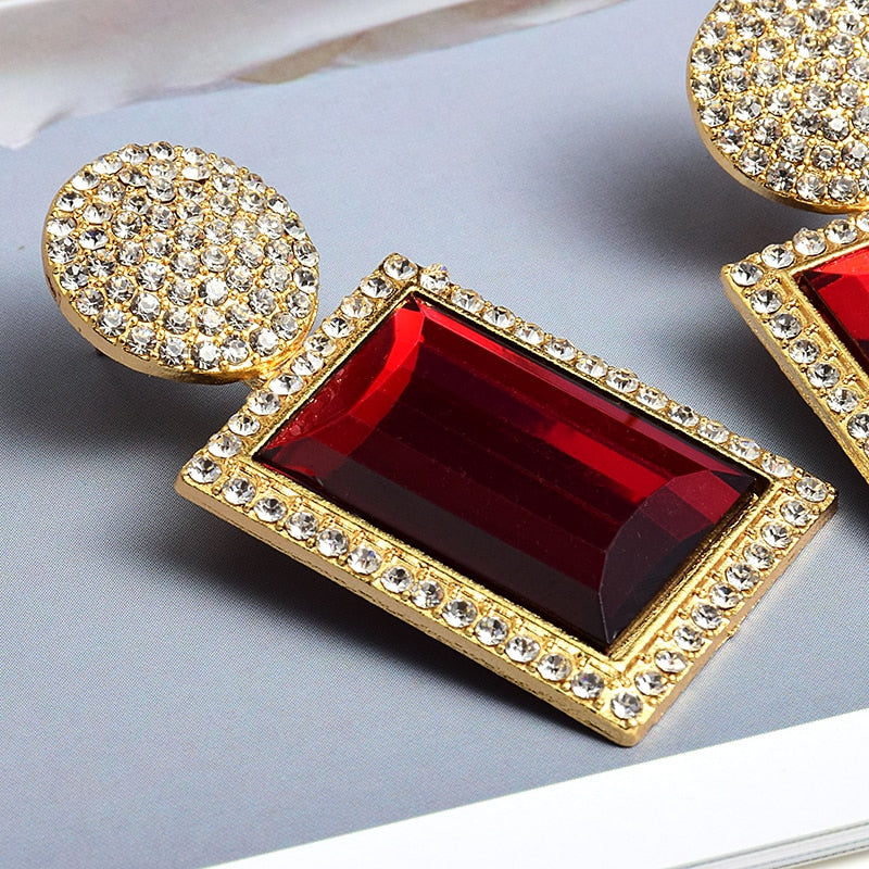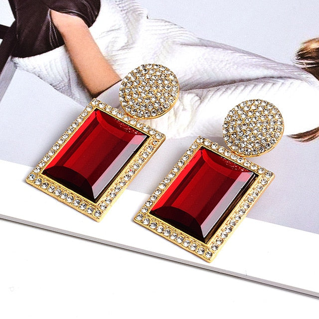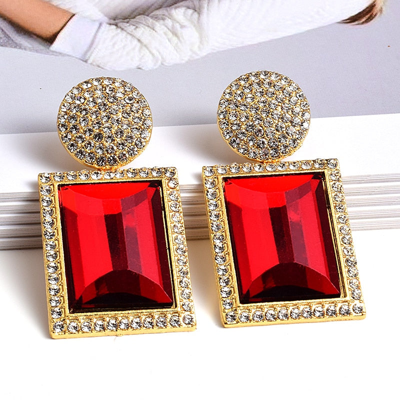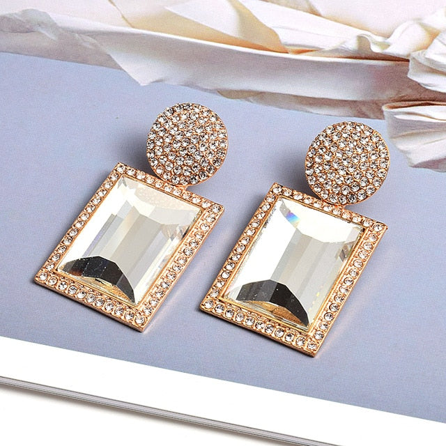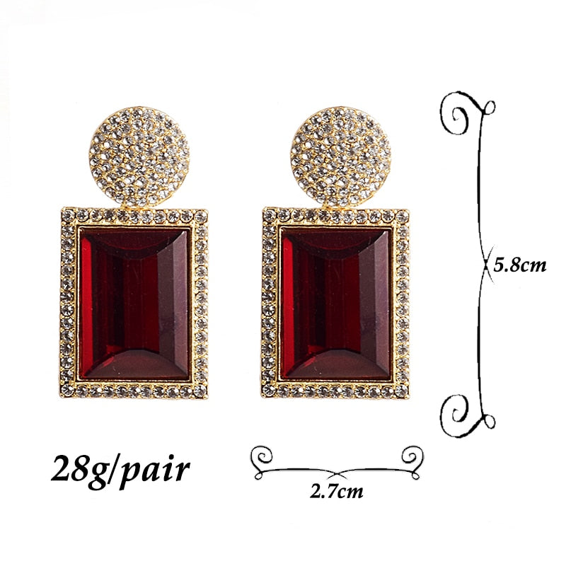 Large Rectangle Rhinestone Drop Dangle Earrings With Zinc Alloy And Stainless Steel Material