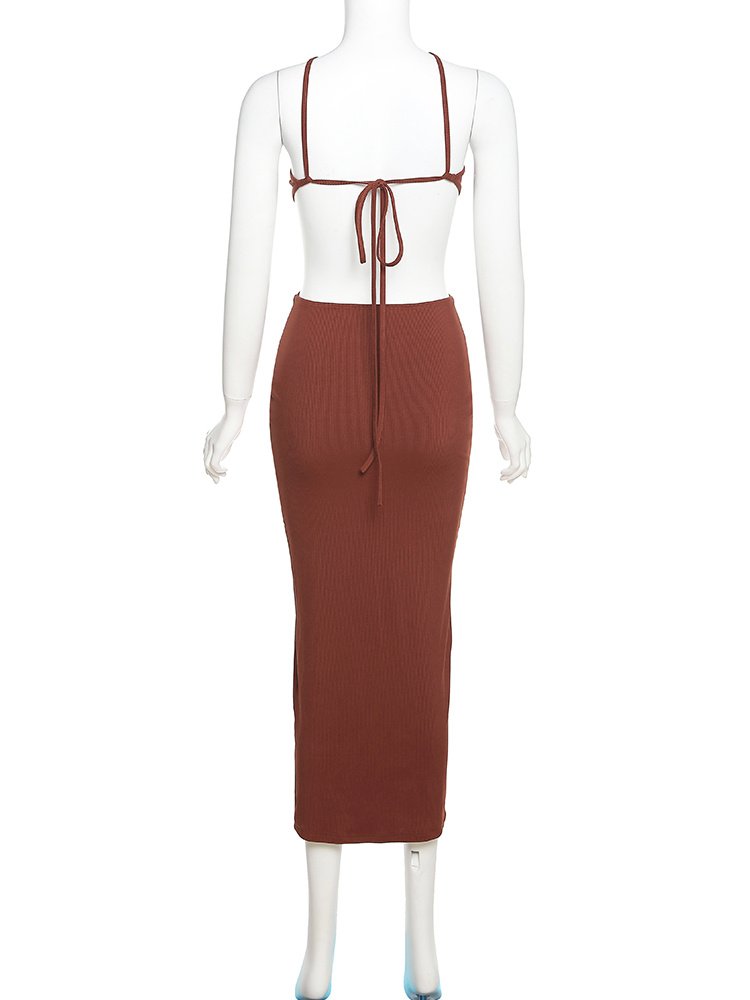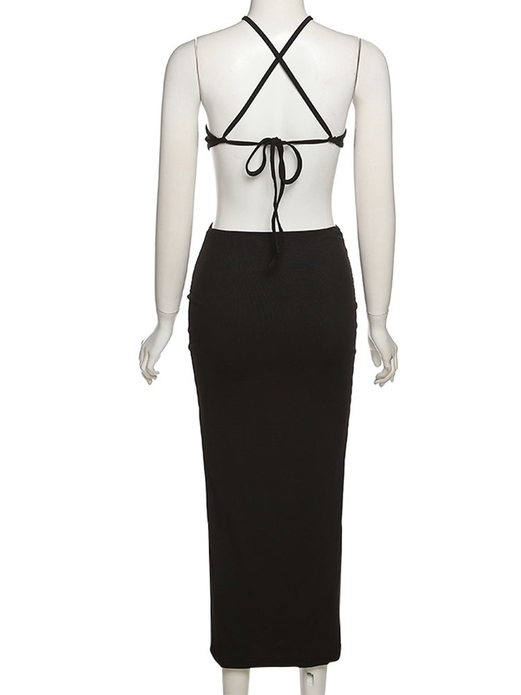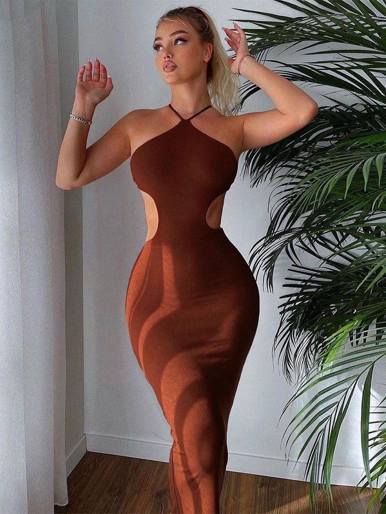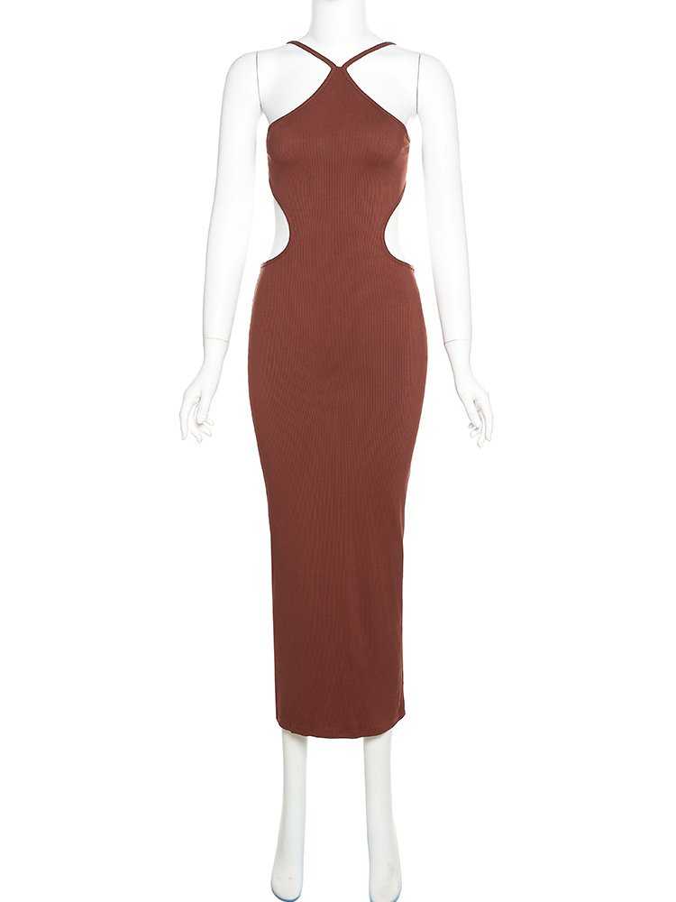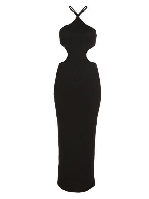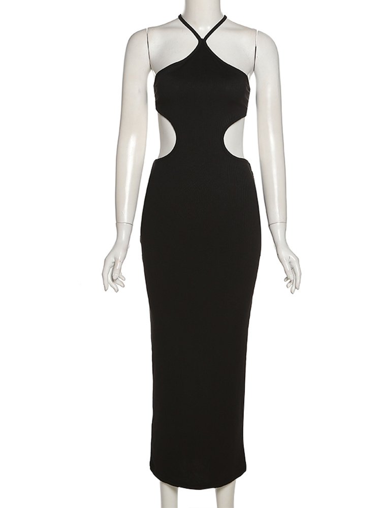 This is a simply beautiful dress with basic solid colors. The halter style with the hollowed-out waist style will compliment your line. A versatile piece that you can wear both for a casual day or night out.
