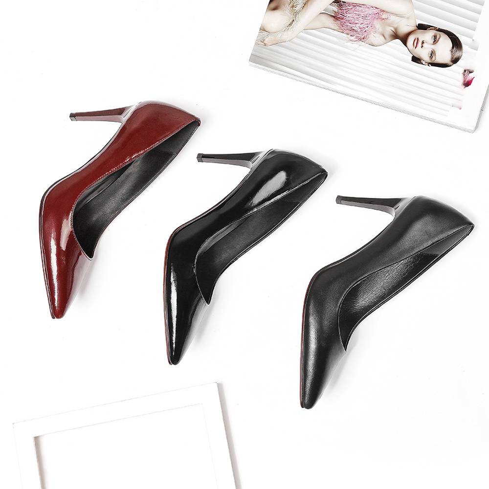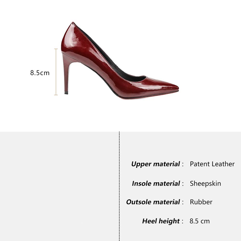 Bordeaux Patent Leather Thin Heels Elegant Pump Shoes