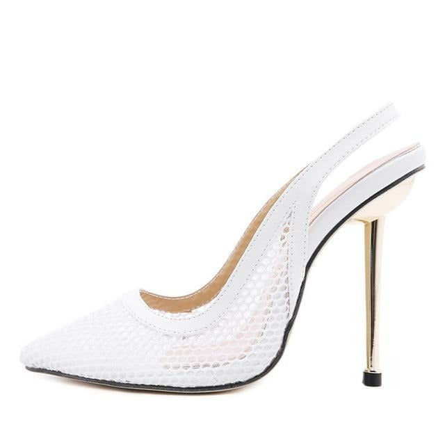 Pointed Toe Solid Mesh Slingback Pumps with Rubber and PU Material