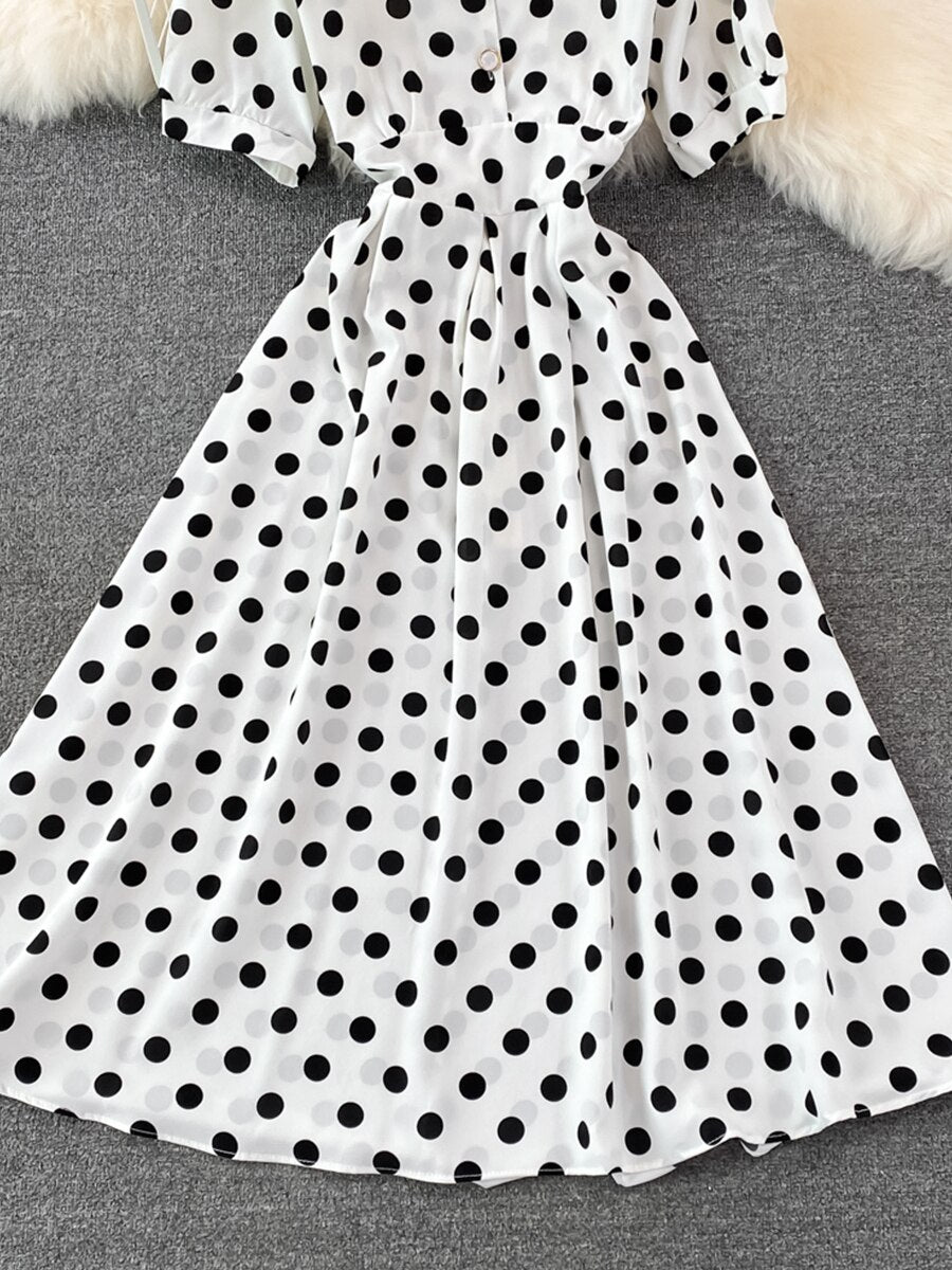 This summery dress is the perfect choice for warm days on the beach. The versatile design allows you to wear it in a variety of styles. This A-line dress is sure to stand out from the crowd. The bright dots pattern creates a fun, playful look that is sure to turn heads.