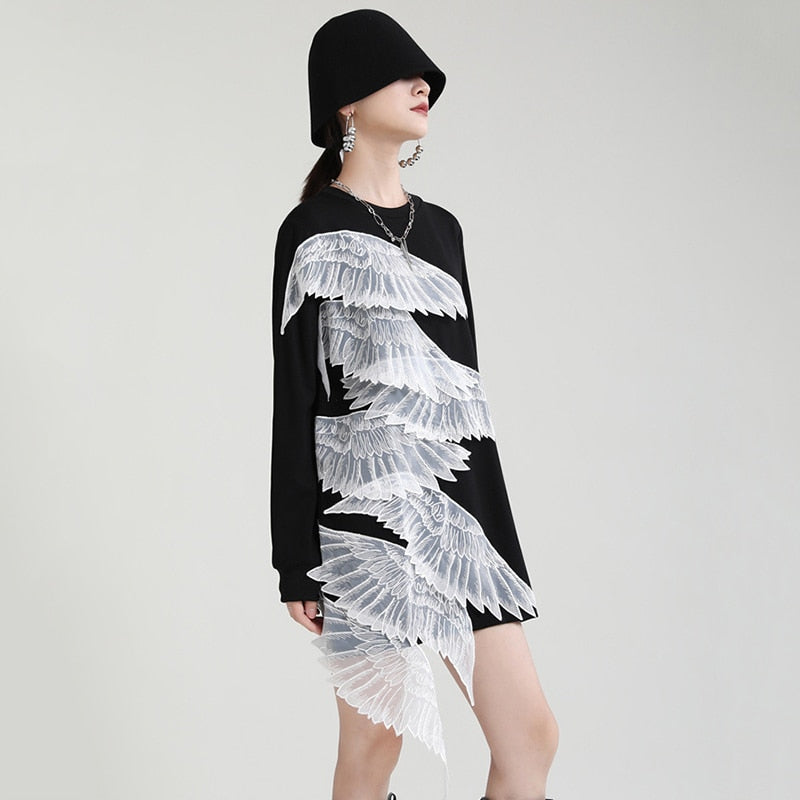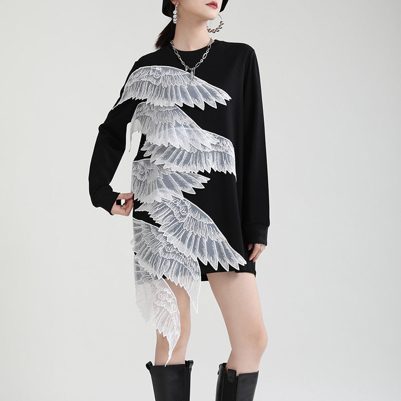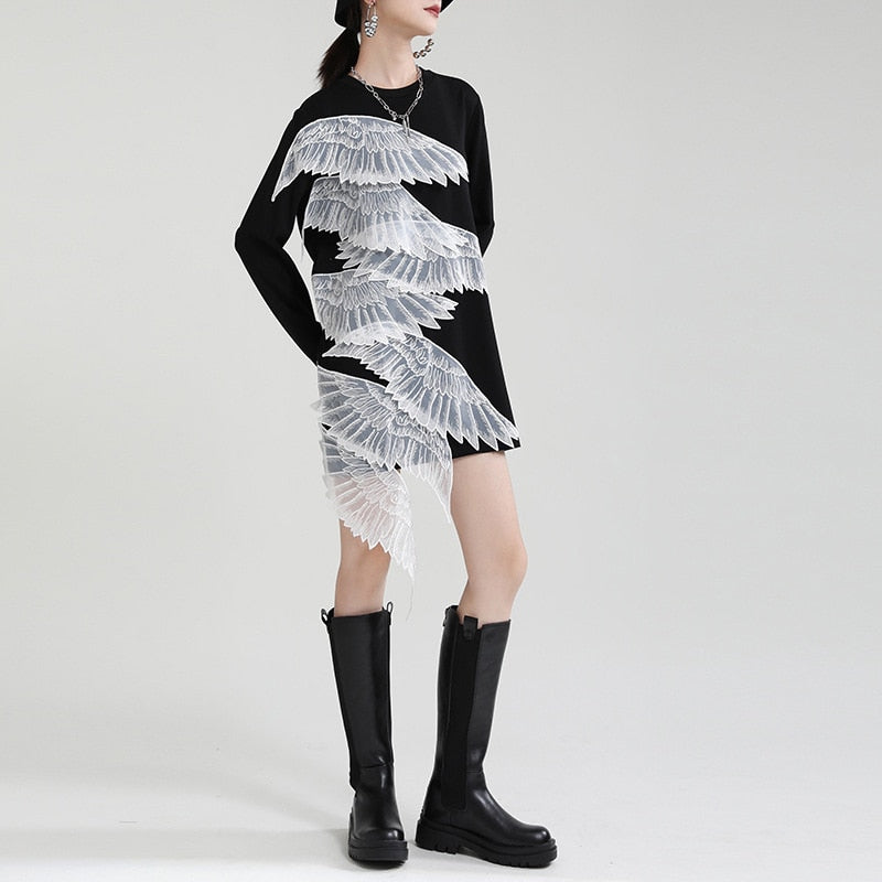 This unique short dress is a great way to add a touch of class to your casual looks. Smooth and soft cotton is comfortable and lightweight. Designed with a wing-style mesh decoration that is sure will help you look like a fashionista.