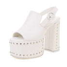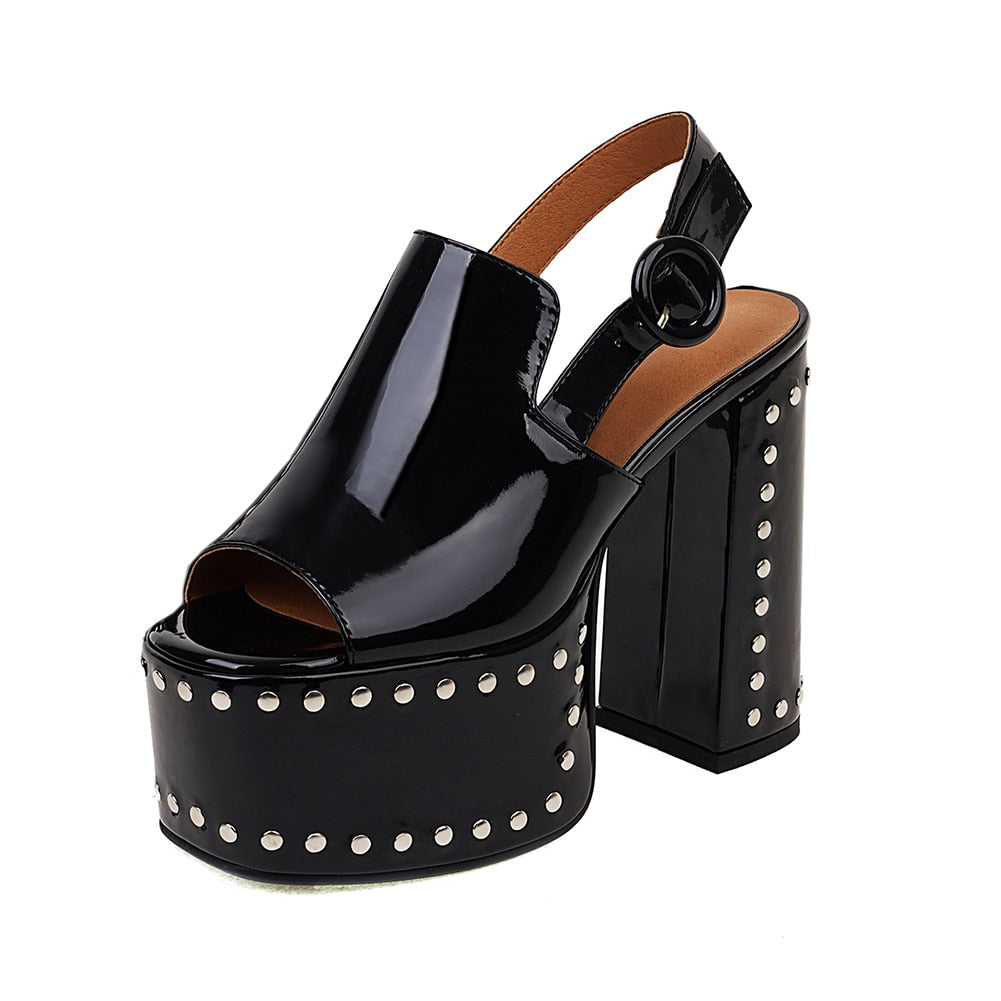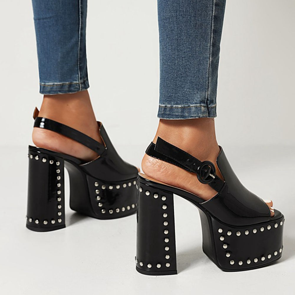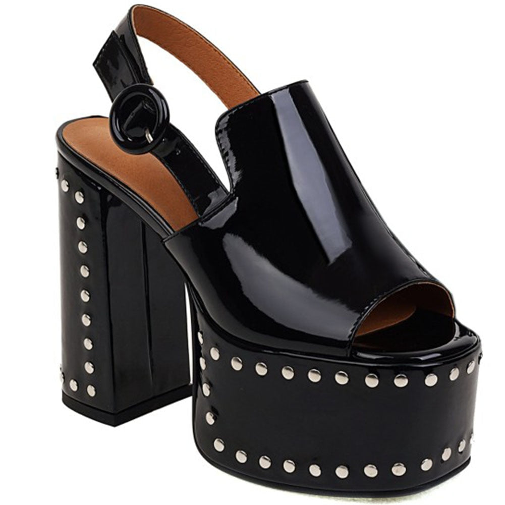 These rivet platformed sandals are the perfect way to complete your look. The thick sole and chunky heel will provide stability and support, while the open toe and slingback ankle strap will give you a more comfortable and easy fit. The wide upper strap will keep the sandal in place. The sleek black, red and white color is versatile and goes with just about anything, so you'll be able to wear these sandals with any outfit.