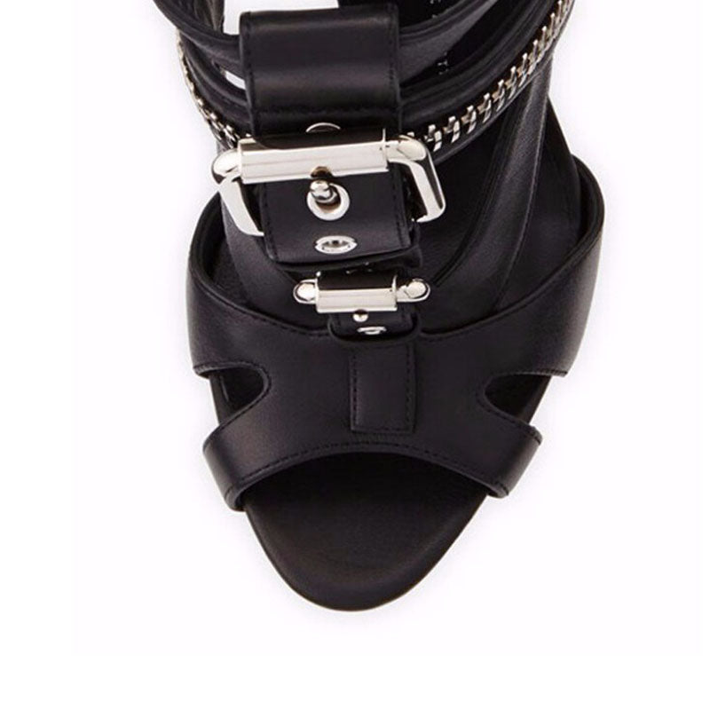 PU Leather Peep Toe Punk Style Bondage Sandal