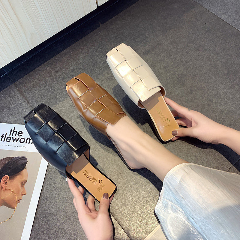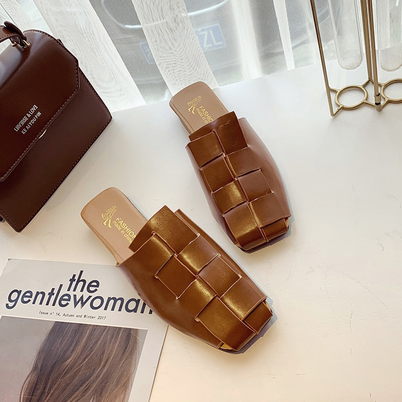 Retro Cross Tie Hollow Slip On Low Heels Women Mules Shoes
