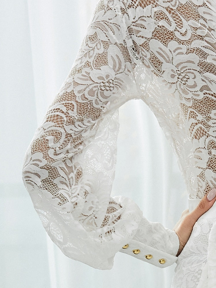 Polyester Solid Color See-Through Long Sleeve Full-Length Jumpsuit